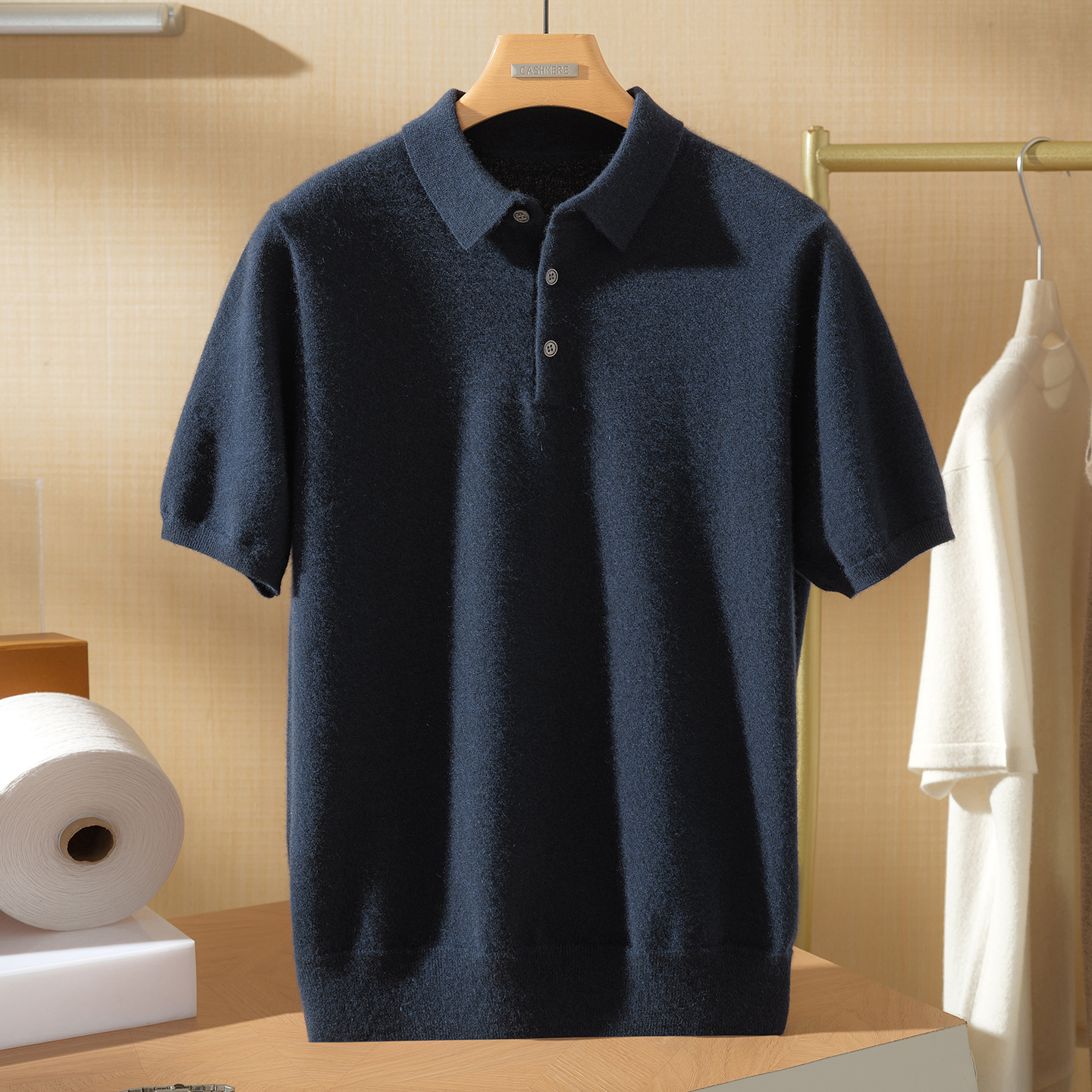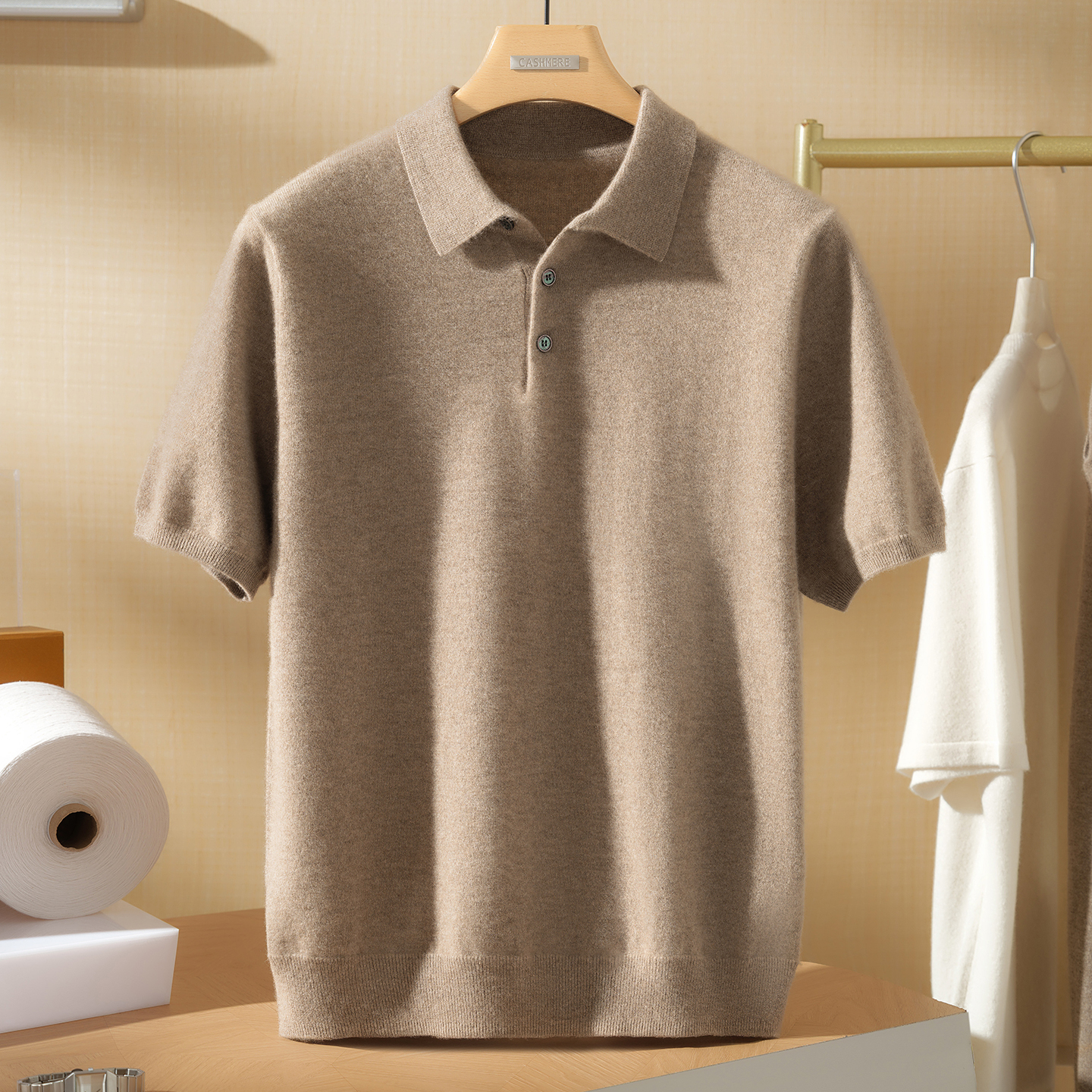 新品 打底衫 POLO领100%山羊绒衫 套头半袖 男针织毛衣短袖 2025秋季
