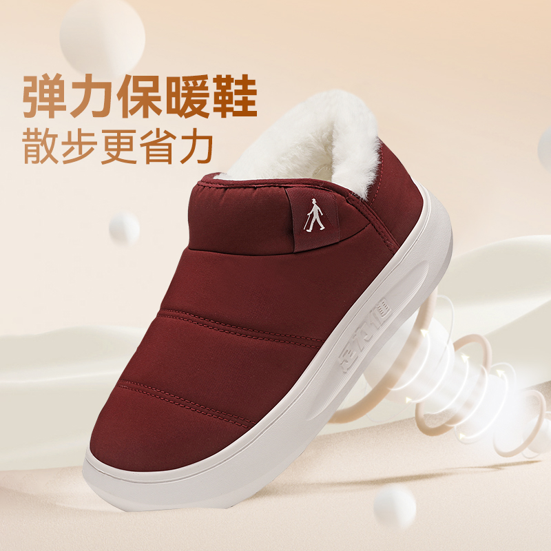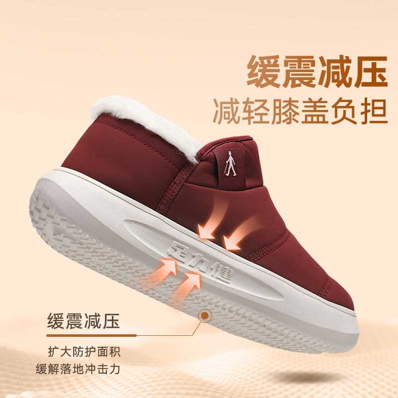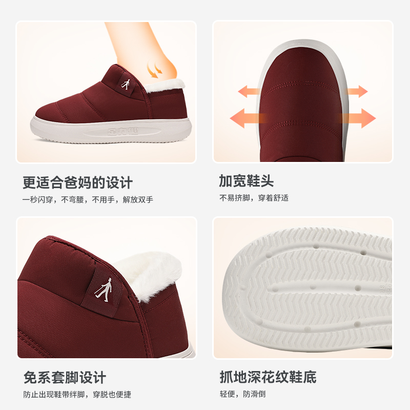 加绒一脚蹬防滑棉鞋 中老年妈妈冬季 女 正品 足力健官方旗舰店老人鞋