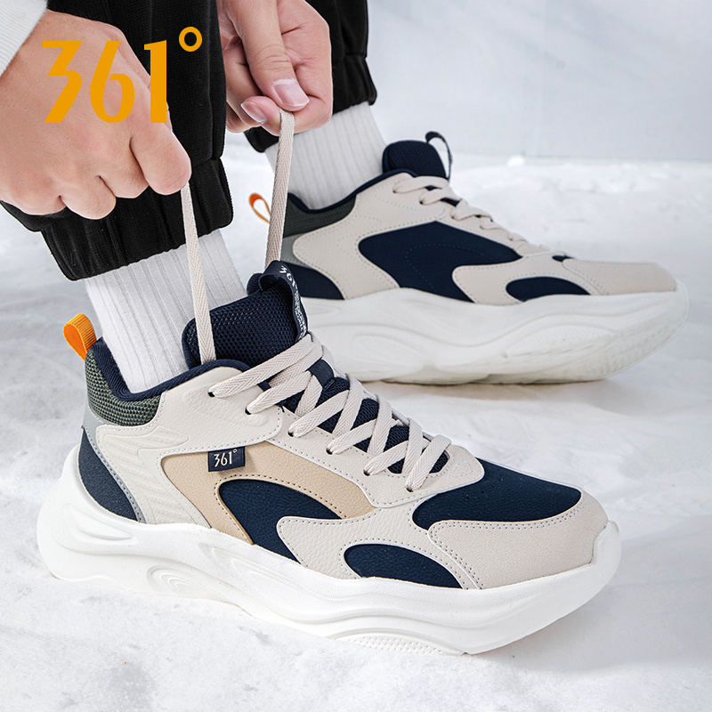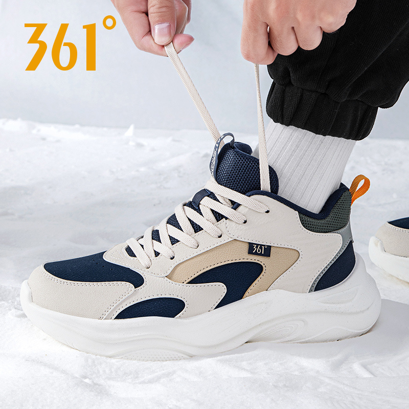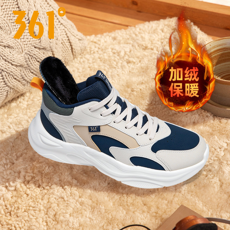 男鞋 361度皮面加厚户外休闲鞋 冬季 加绒保暖跑步鞋 男 新款 361运动鞋