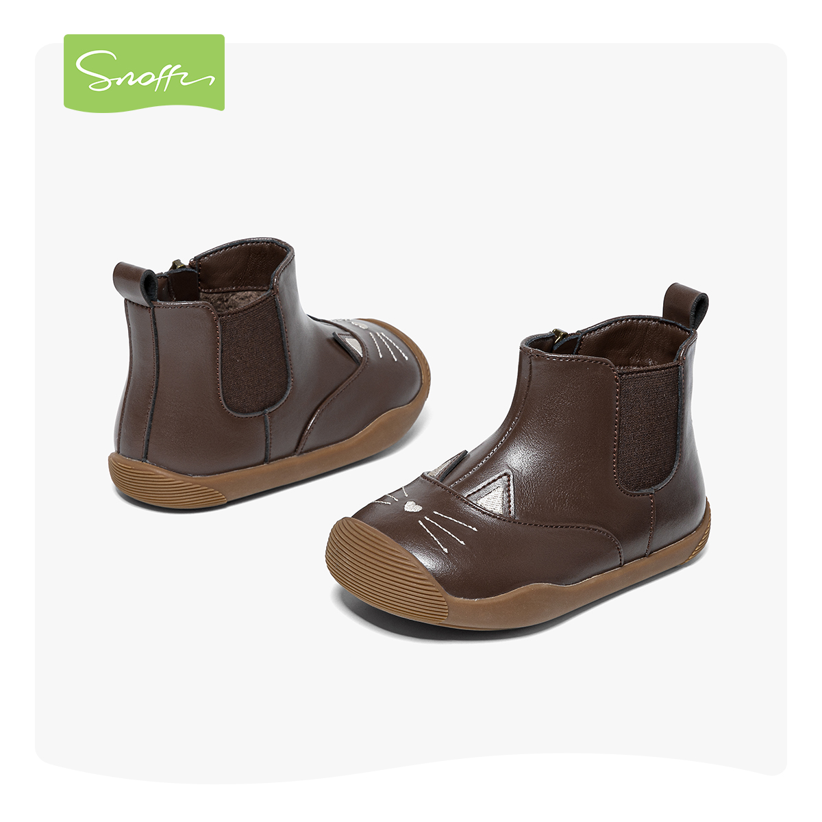 小女孩公主加绒防滑女童靴子 斯纳菲宝宝皮靴秋冬新款 商场同款