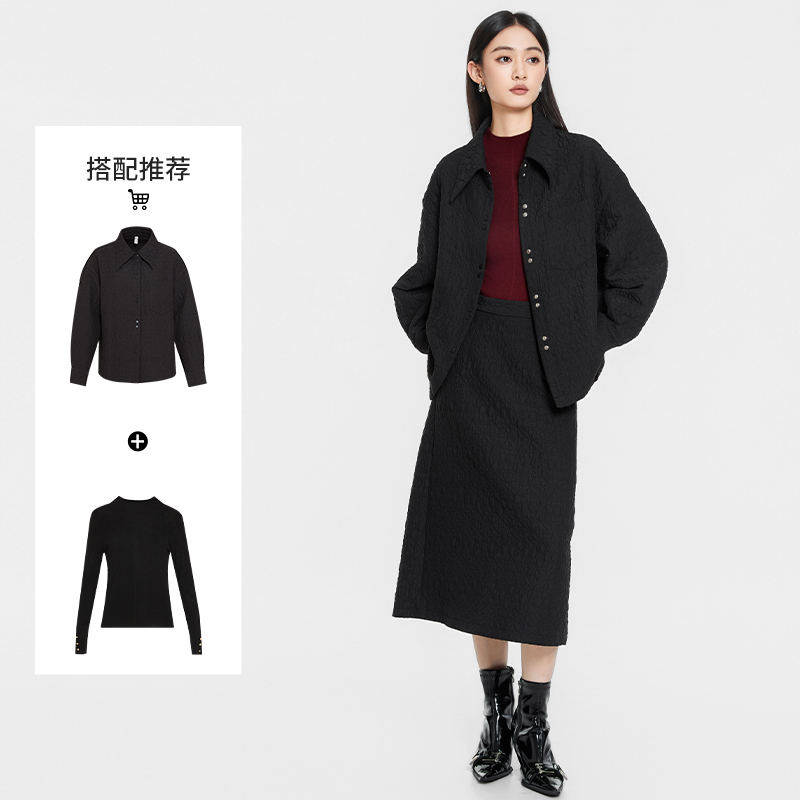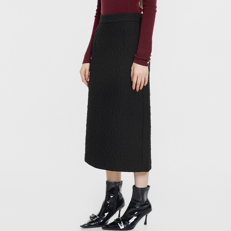 女装 新款 百搭直筒显瘦中长裙 纹半身裙2025年秋装 秋水伊人学院风格