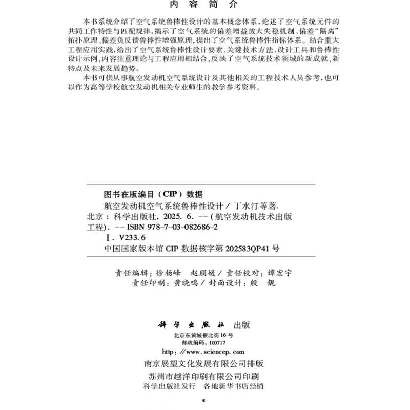 航空发动机空气系统鲁棒性设计 9787030826862 工程 著 正版 包邮 科学出版 刘传凯 丁水汀 航空发动机技术出版 刘鹏 社 邱天