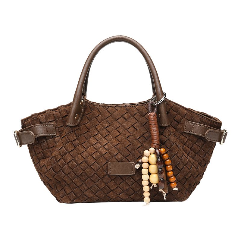 ECODAY秋冬季 原创设计麂皮编织包大容量托特包女通勤包单肩斜挎包