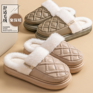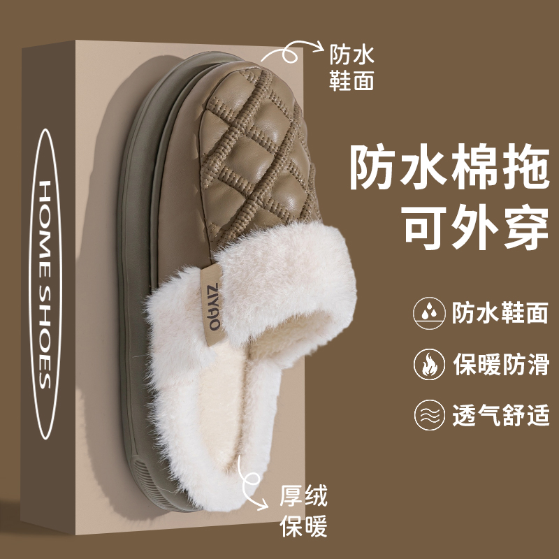 室内家居情侣保暖踩屎感毛绒棉鞋 防水棉拖鞋 2025新款 秋冬季 女 男士