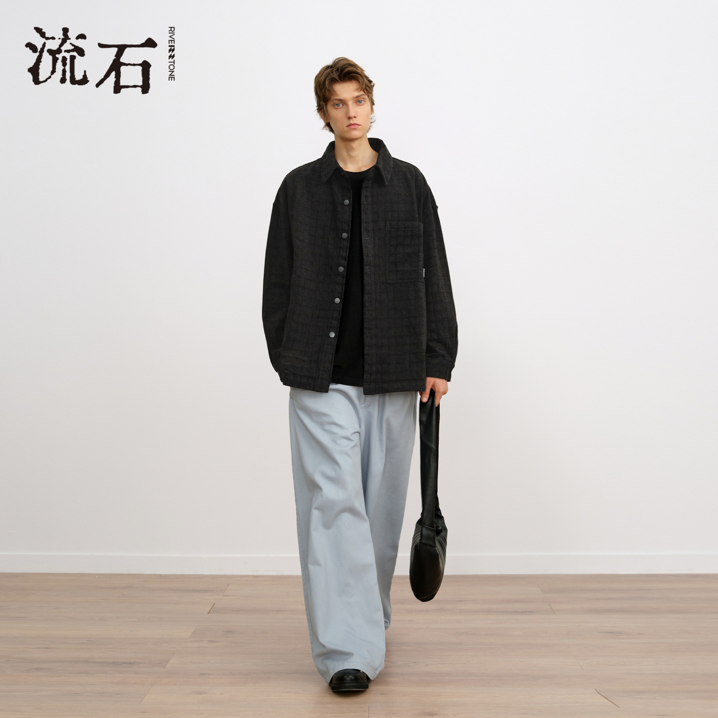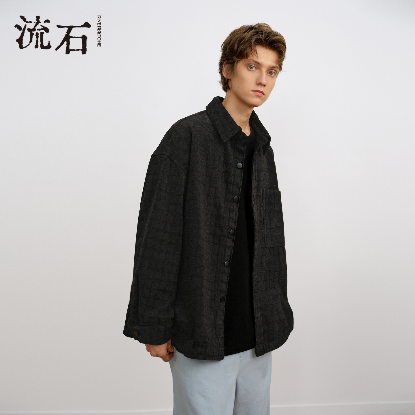 新款 外套2025年冬季 男士 时尚 复古夹克 流石男装 经典 华夫格黑色衬衫