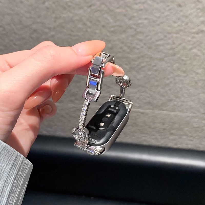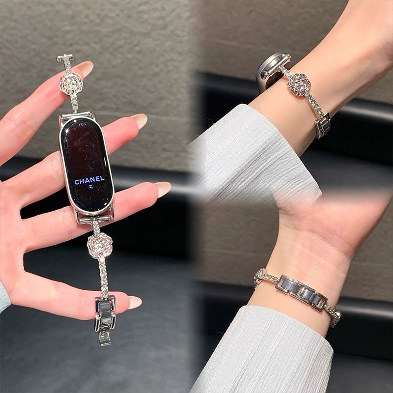 替换带细可调节手链腕带女生可爱夏季 山茶花镶钻小香风金属8NFC版 新款 适用于小米手环10表带9陶瓷特别版