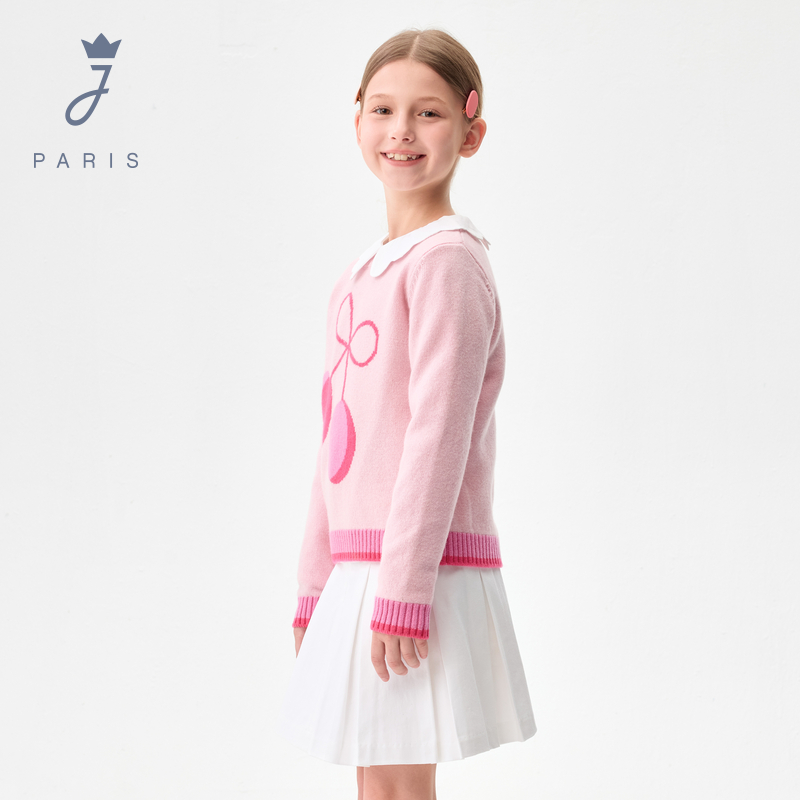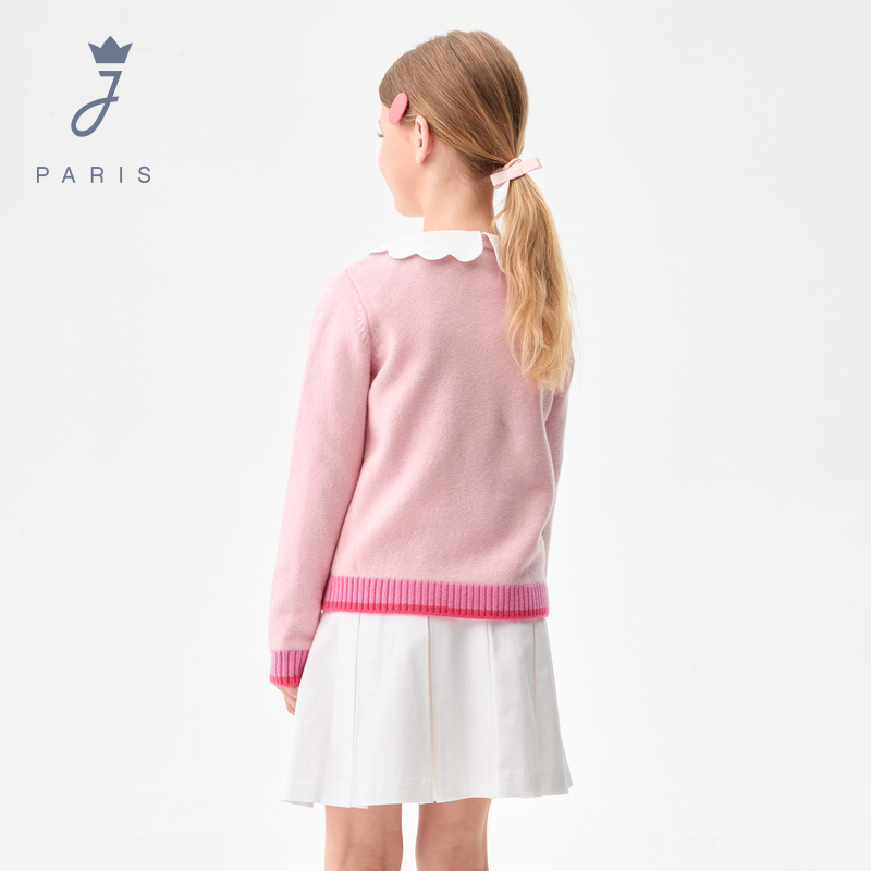 绣花内搭休闲短款 紫涵撞色花边翻领修身 新款 毛衣女冬季 上衣 针织衫