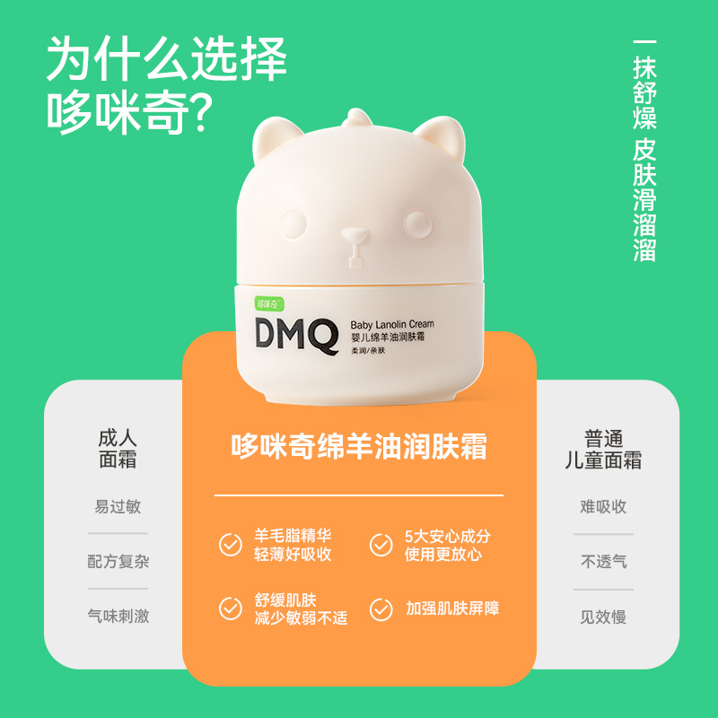 哆咪奇婴儿绵羊油润肤霜补水儿童保湿 宝宝面霜滋润秋冬 霜擦脸