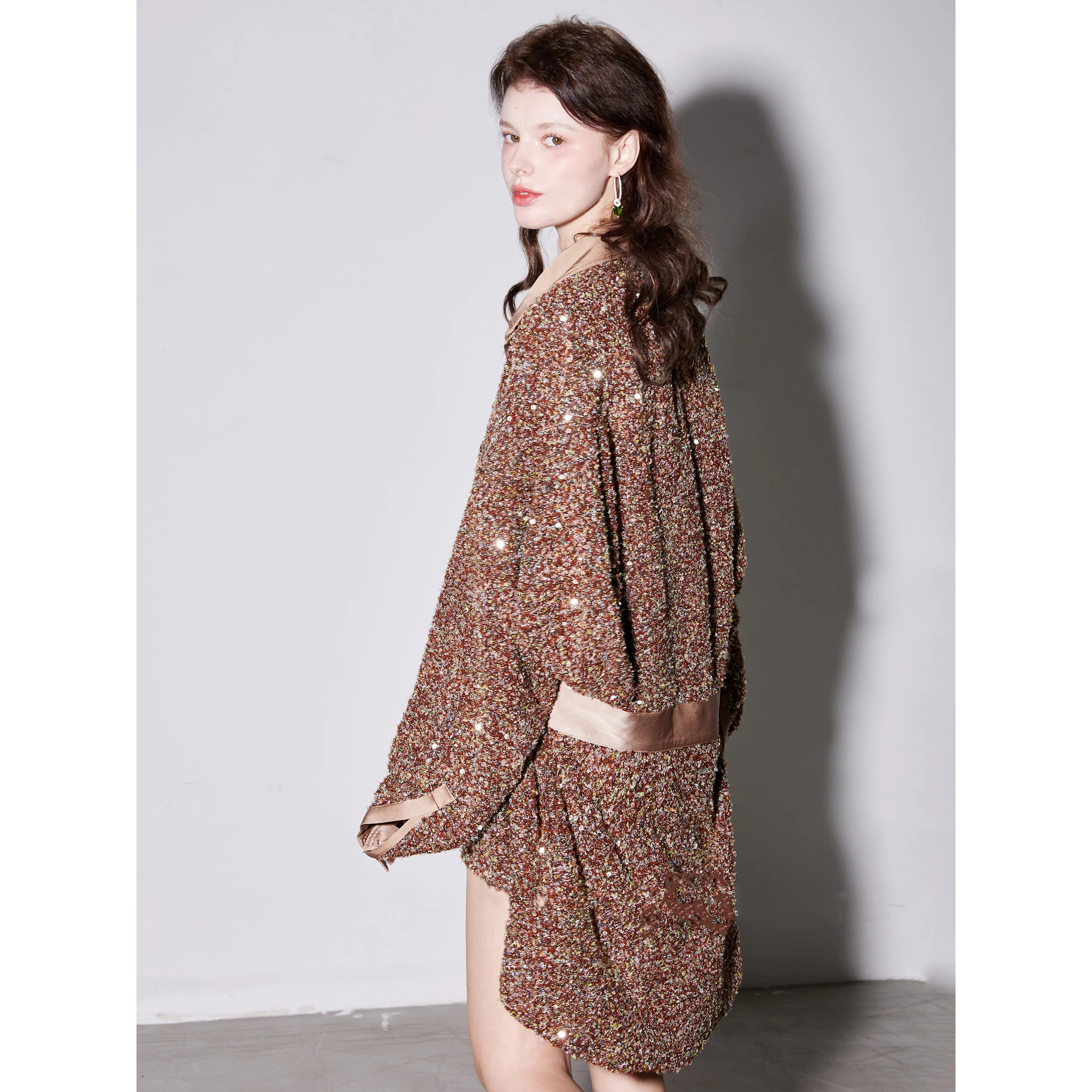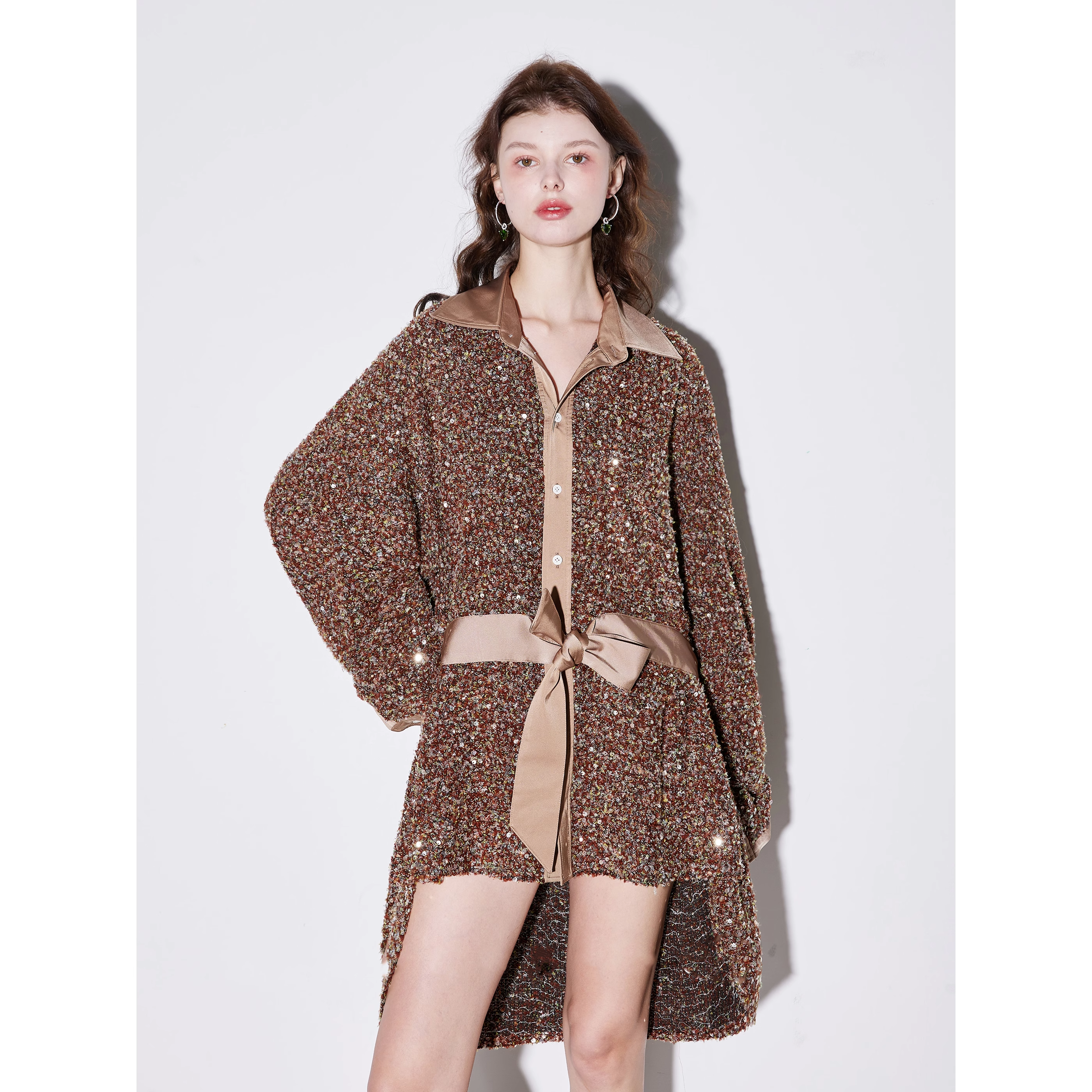爵莱菲大码 连衣裙 胖mm亮片圈圈呢高级设计oversize率性时髦精衬衫