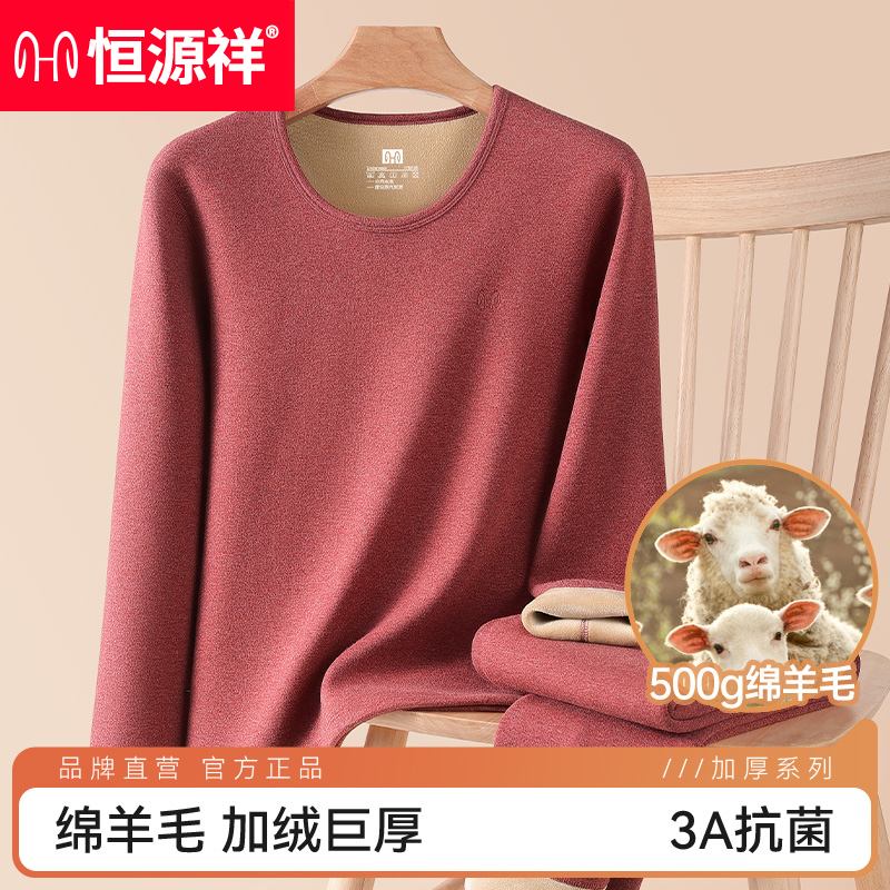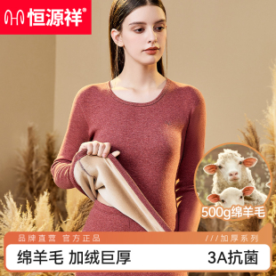 无痕贴身加绒打底女士秋衣秋裤 棉毛衫 女秋冬季 恒源祥保暖内衣套装