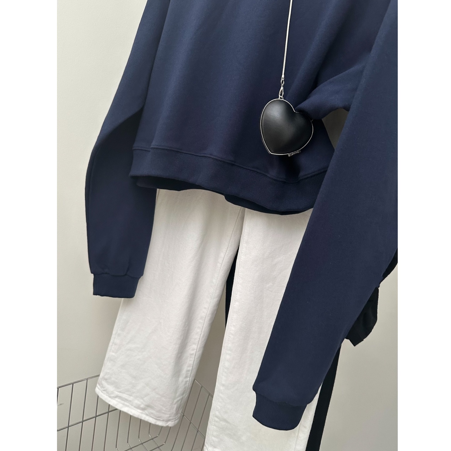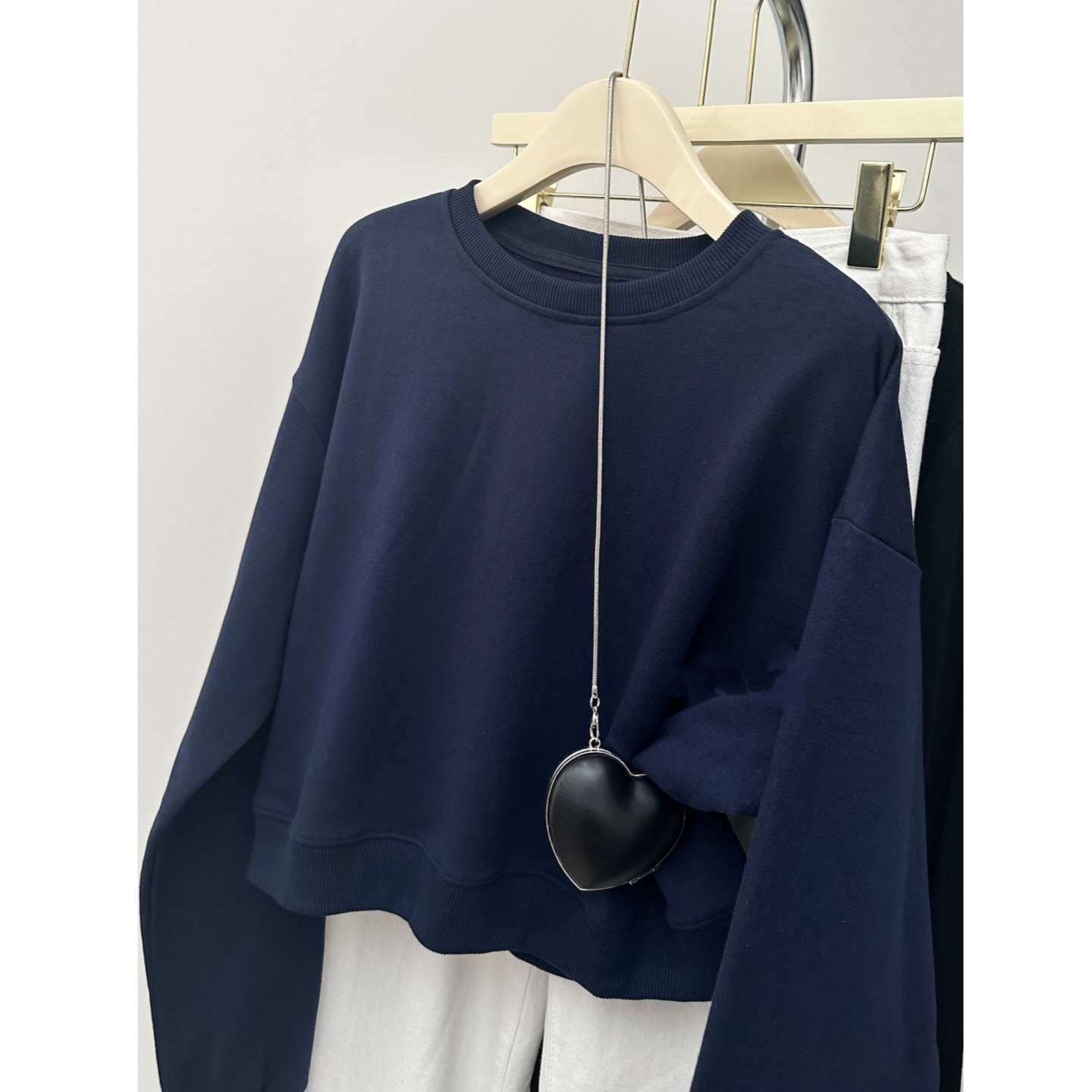 藏蓝色宽松长袖 韩系短款 2025新款 薄款 纯色衣 圆领重磅卫衣女早秋款