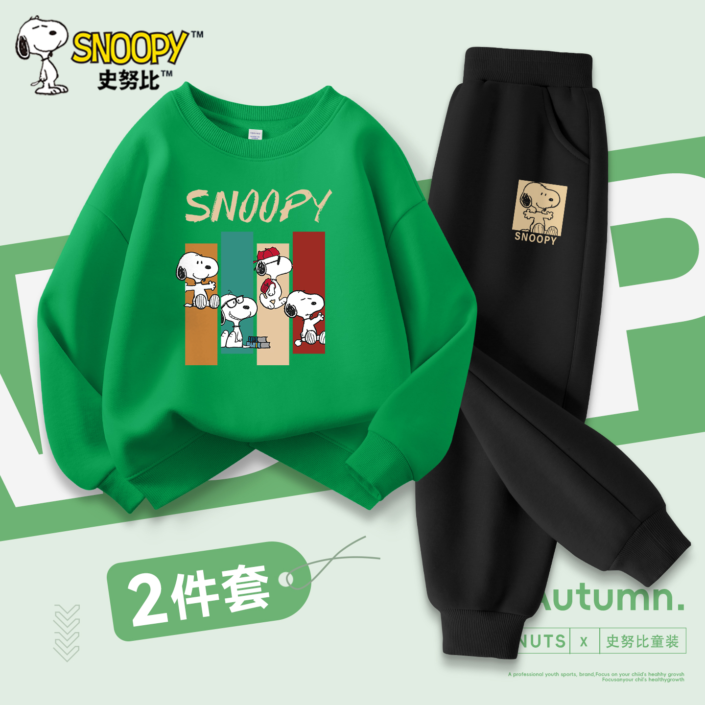 儿童加绒衣服冬 男大童运动卫衣男孩秋装 史努比男童秋套装 2025新款