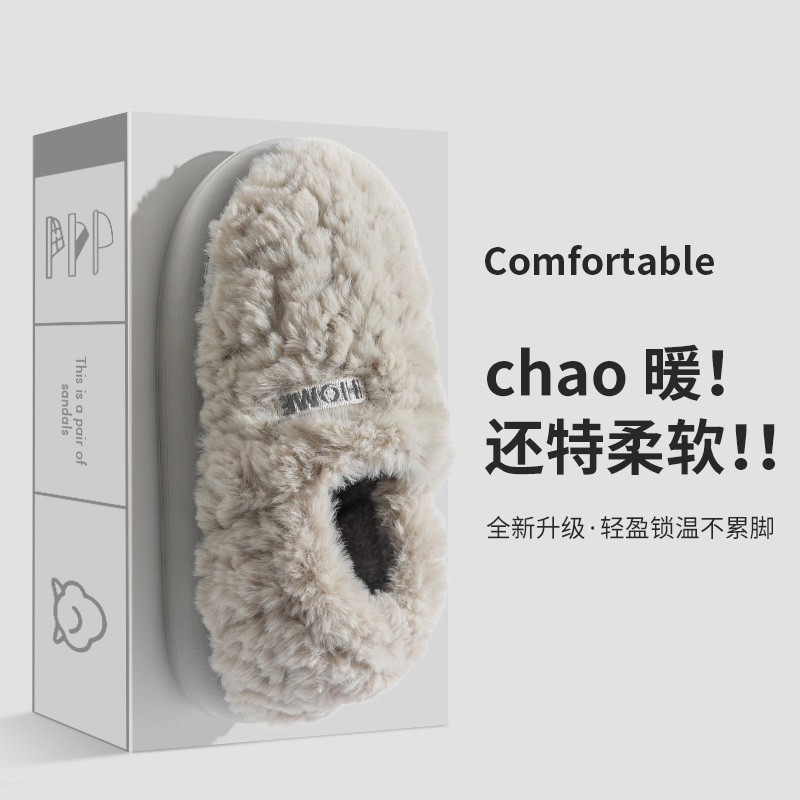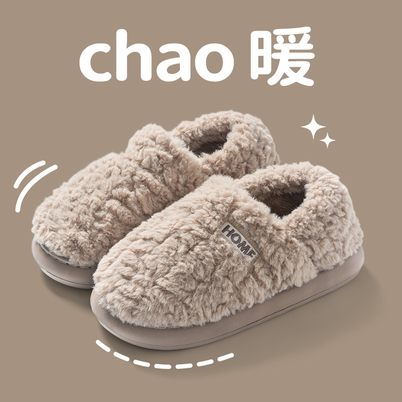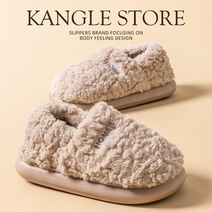 冬季 棉拖鞋 保暖加绒踩屎感厚底防滑室内居家包跟情侣棉鞋 新款 男士
