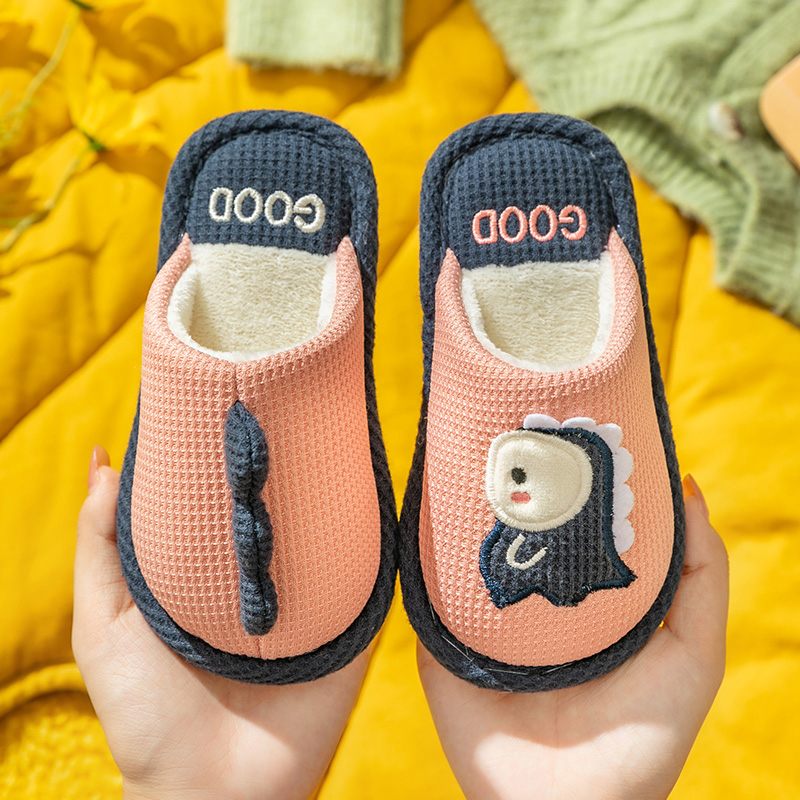 儿童棉拖鞋 男女宝宝秋冬卡通恐龙防滑可爱保暖室内软底拖鞋