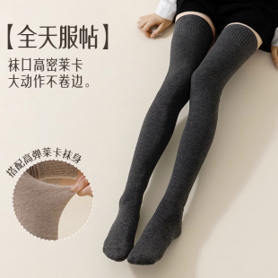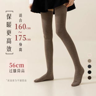 过膝袜子女秋冬款 纯棉纱线长筒袜加长保暖高筒防滑护膝大腿袜春秋
