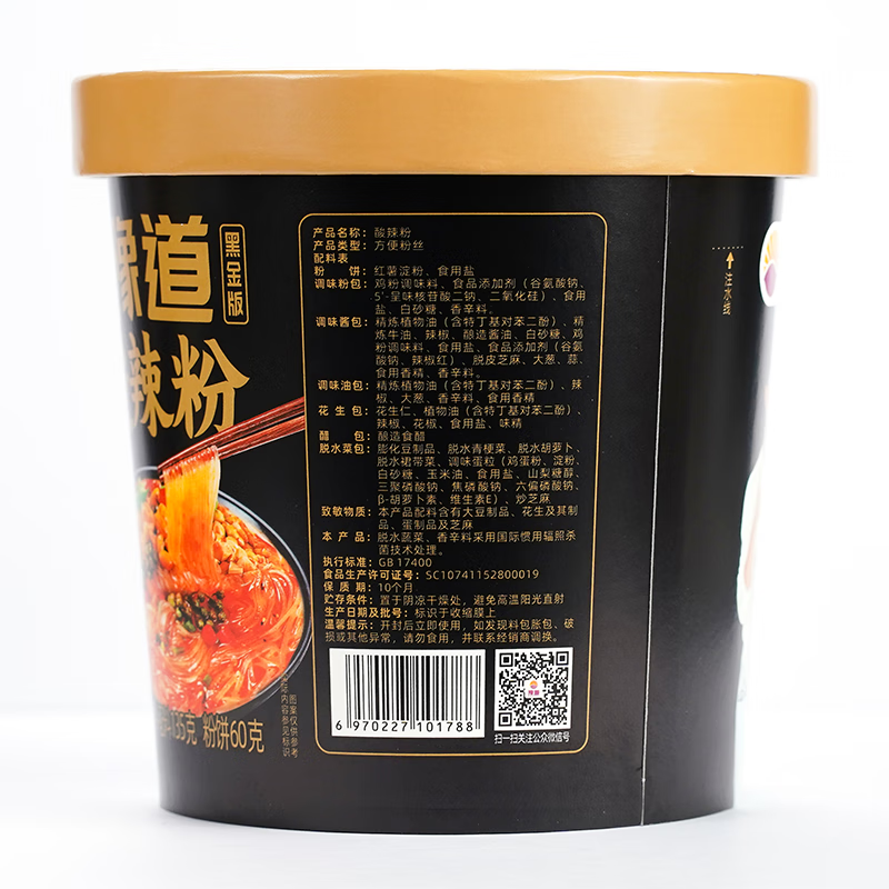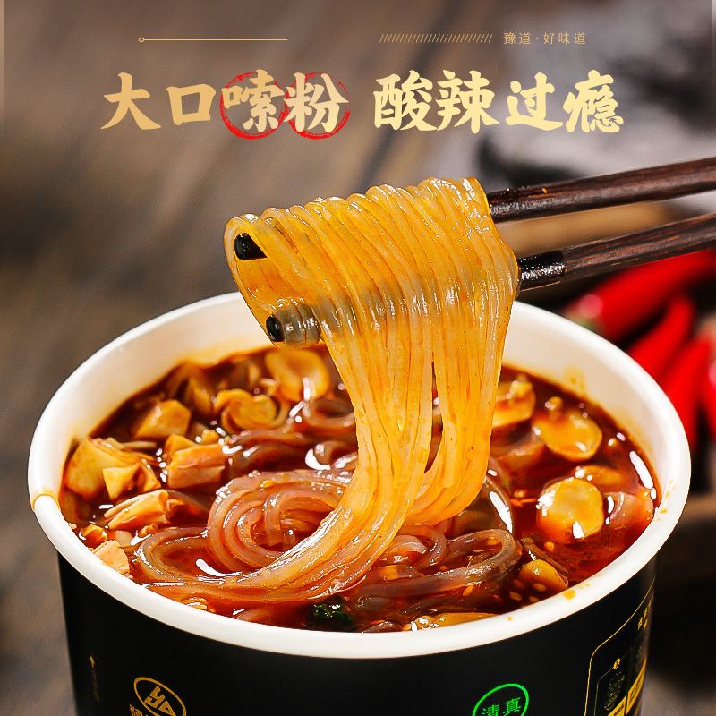 豫道6桶装 酸辣粉红薯粉丝米线清真宵夜冲泡方便速食免煮 黑金版