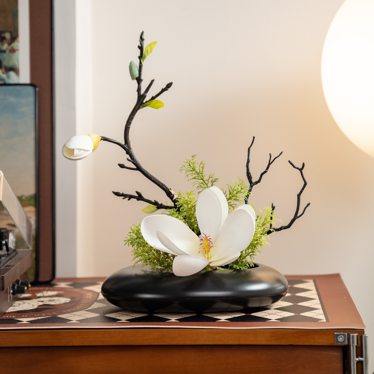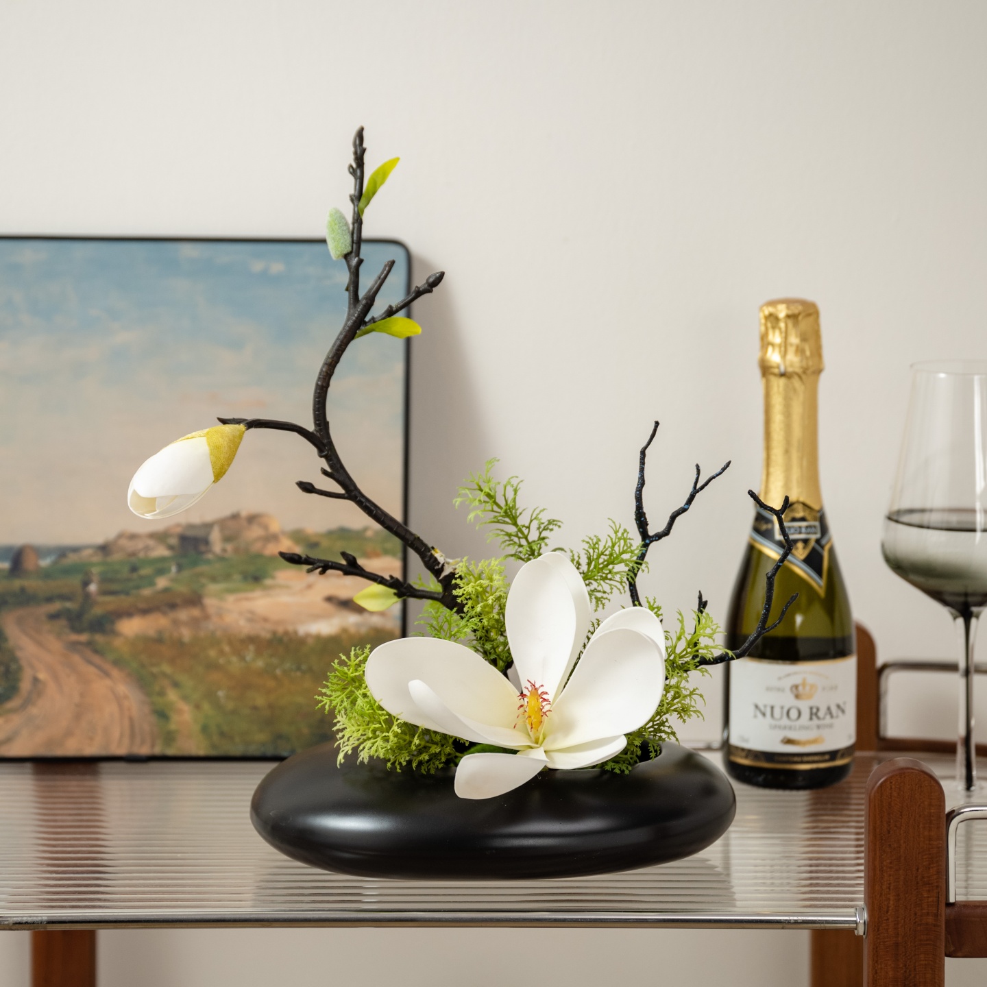 新中式 饰绿植盆栽 艺术摆件仿真花假花高端大气酒柜书房禅意装