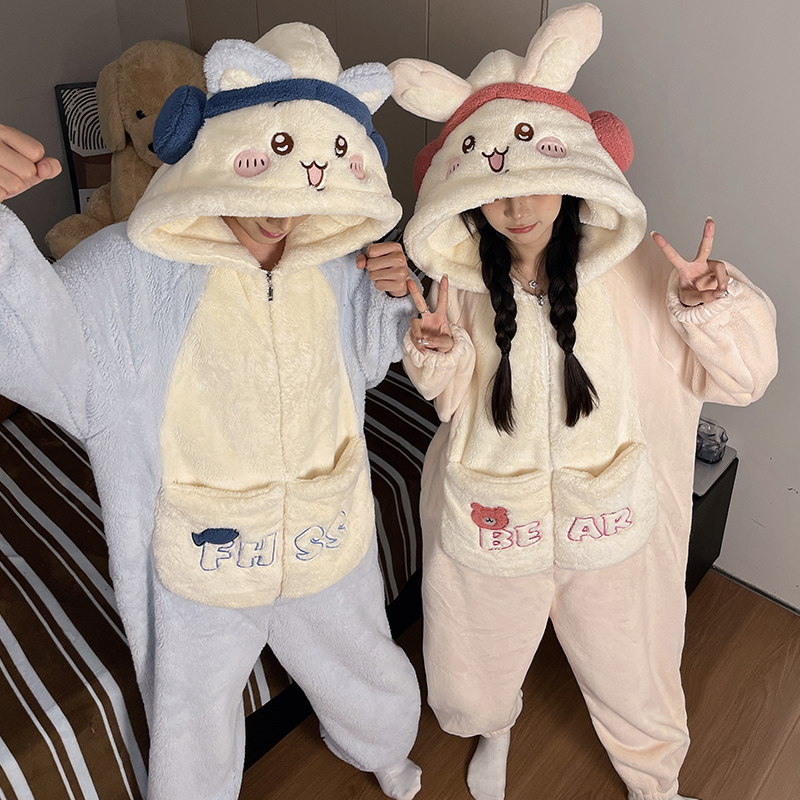 情侣睡衣可爱熊猫男女士家居服套装 贝妍春秋新款 加厚针织棉质长袖