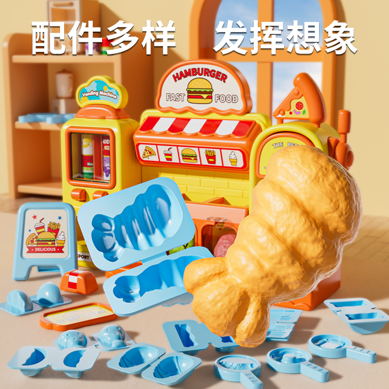 儿童彩泥汉堡店玩具橡皮泥diy汉堡黏土模具套装 6岁女孩生日礼物