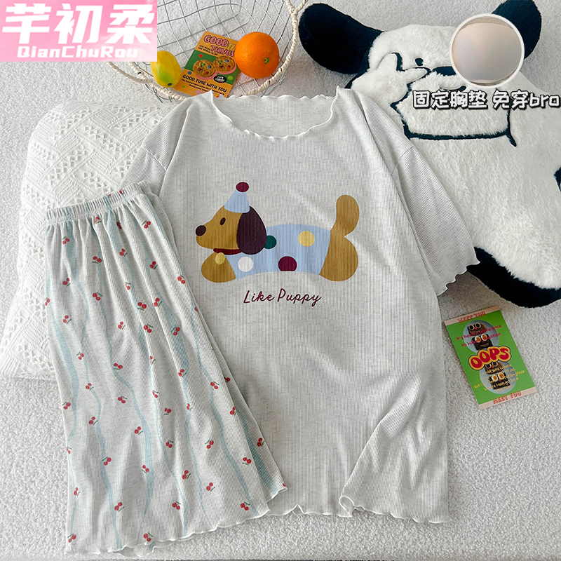 开衫 都市丽人纯棉睡衣女春秋款 2025新款 套装 甜美家居服 带胸垫长袖