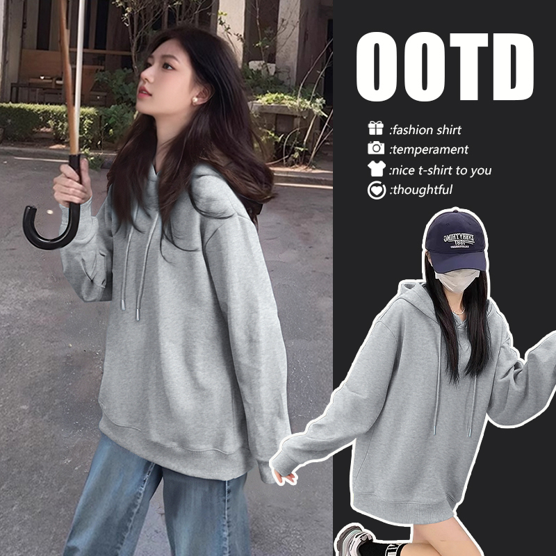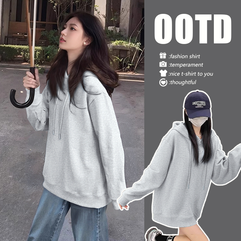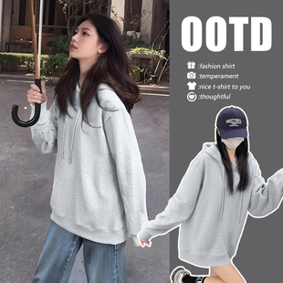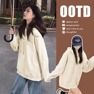 长袖 宽松百搭帽衫 上衣 春秋季 NOW真维斯黑色连帽卫衣女2025新款