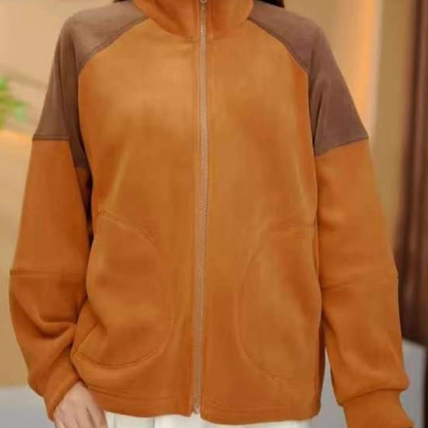 2025年秋冬新款 宽松休闲百搭立领拉链拼色奥粒绒外套上衣女潮 韩版