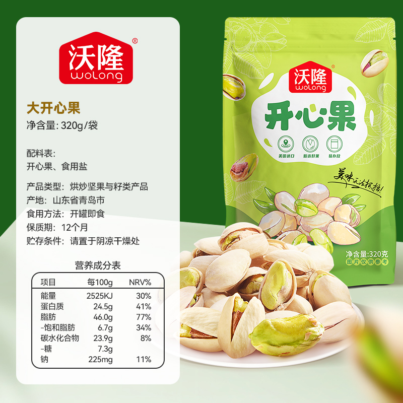 原色原香坚果健康营养零食 沃隆开心果320g2袋装 双11抢先付定