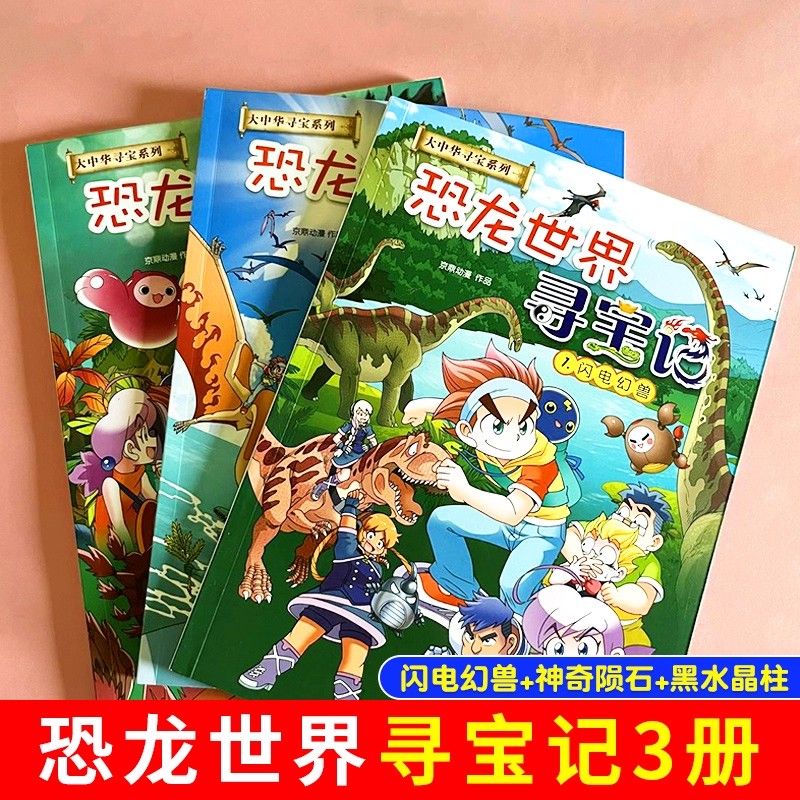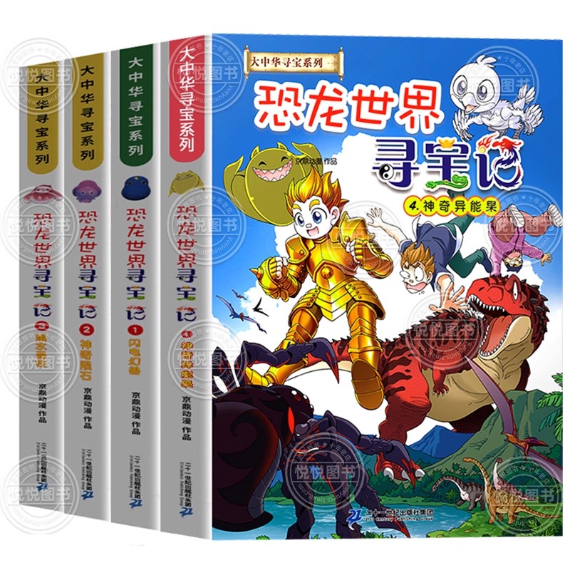 1闪电幻兽2神奇陨石3黑水晶柱科学4神奇异能果漫画书小学生科普百科漫画书 大中华寻宝记系列恐龙世界寻宝记全套4册 官方正版