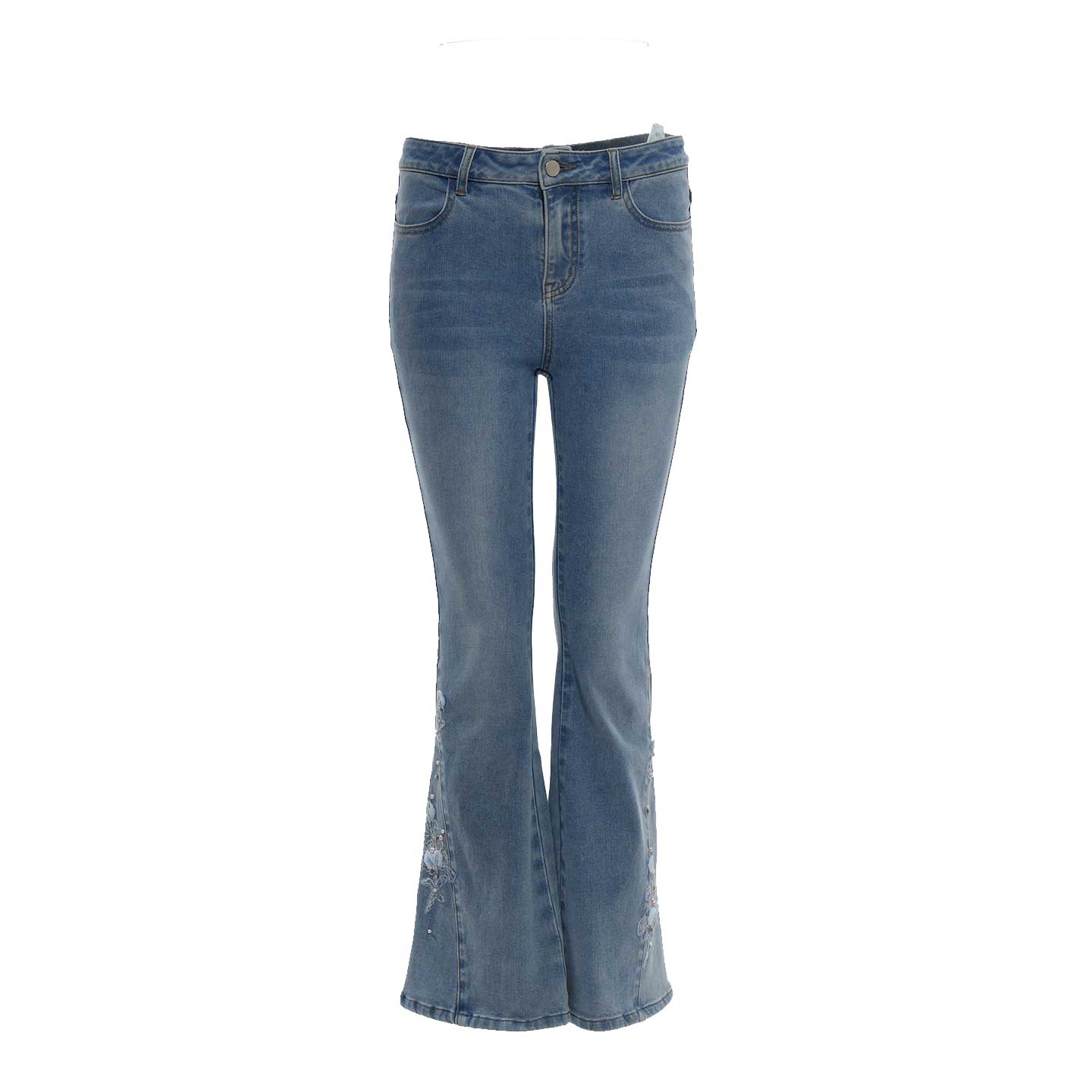 拼接喇叭裤 森柔牛仔 春季 女高腰开叉长裤 显腿长小心机 森马牛仔裤