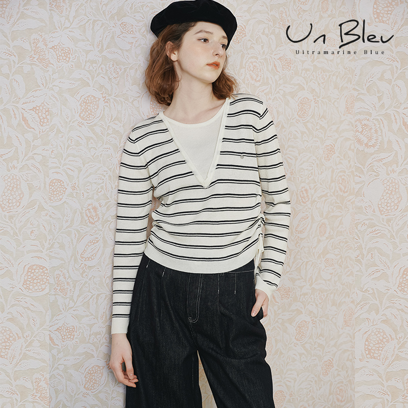 针织衫 条纹短袖 长袖 开衫 毛衣外套 RARN2025秋装 两件套圆领修身 新款