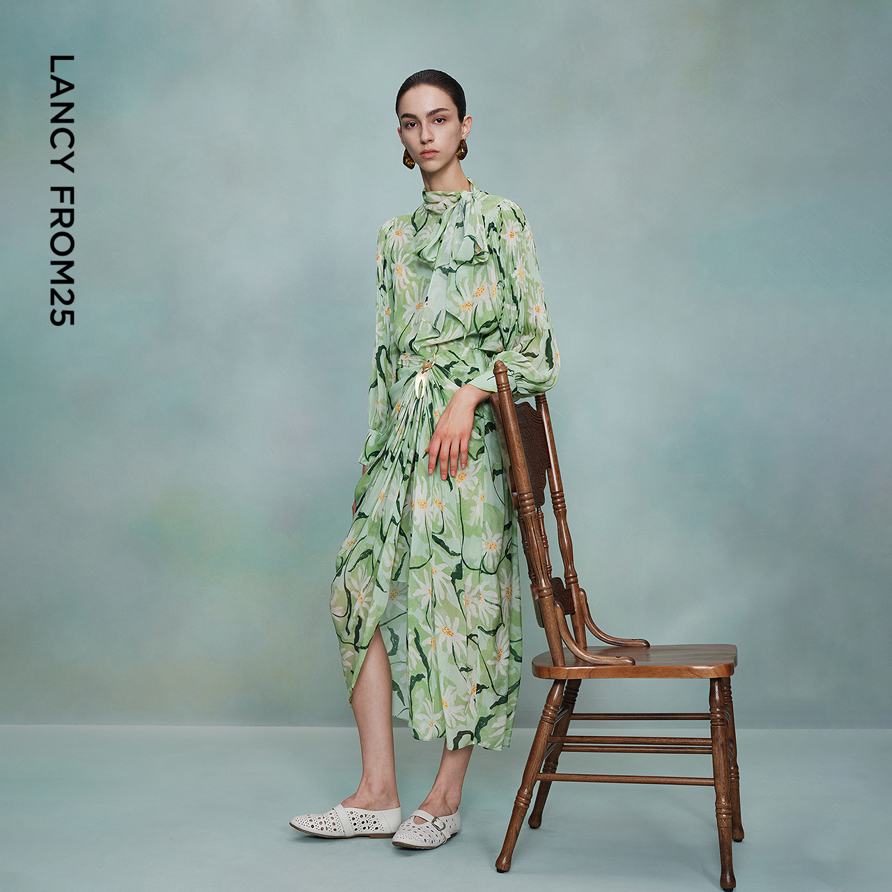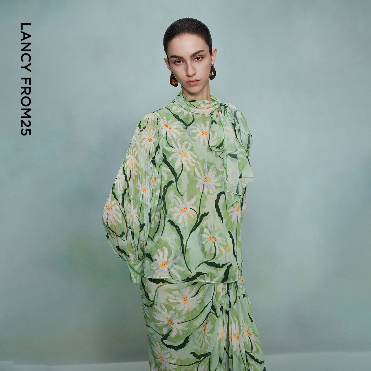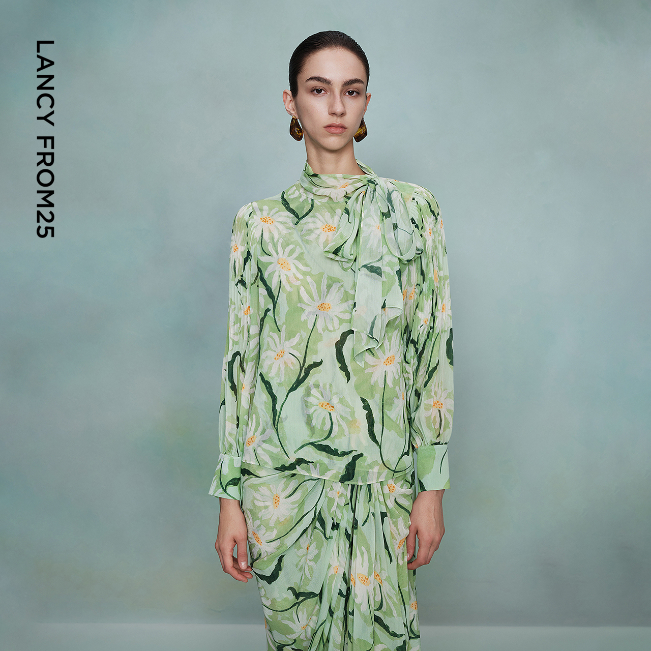 高级感上衣2025年冬季 朗姿复古宫廷风印花衬衫 新款 艺术家联名