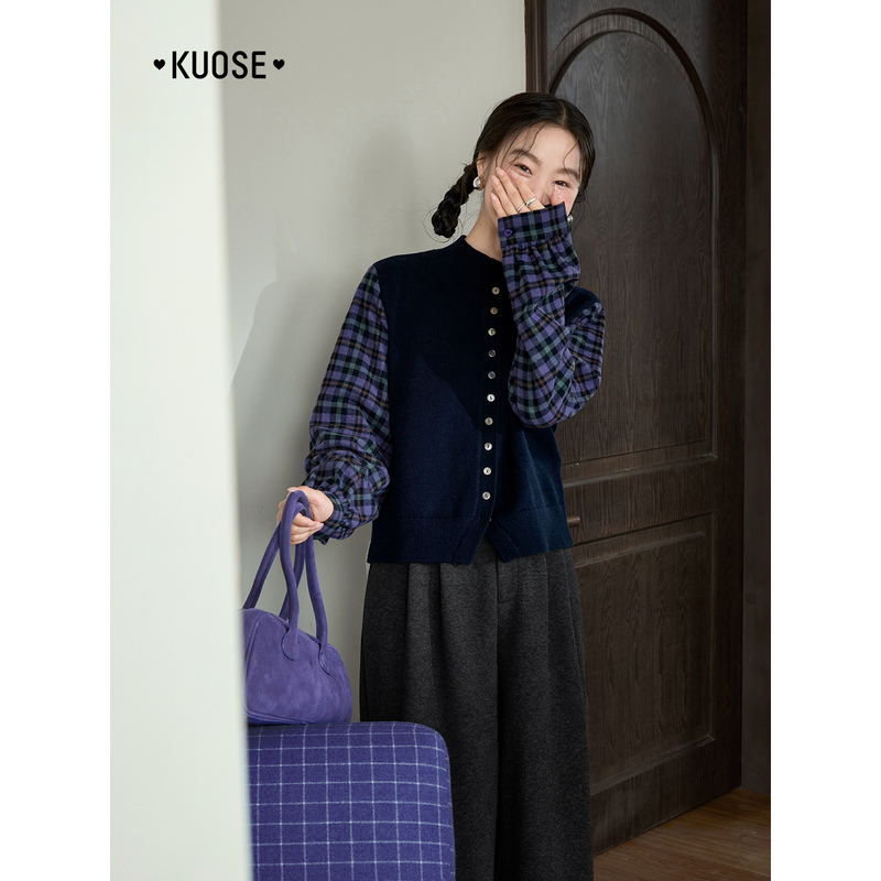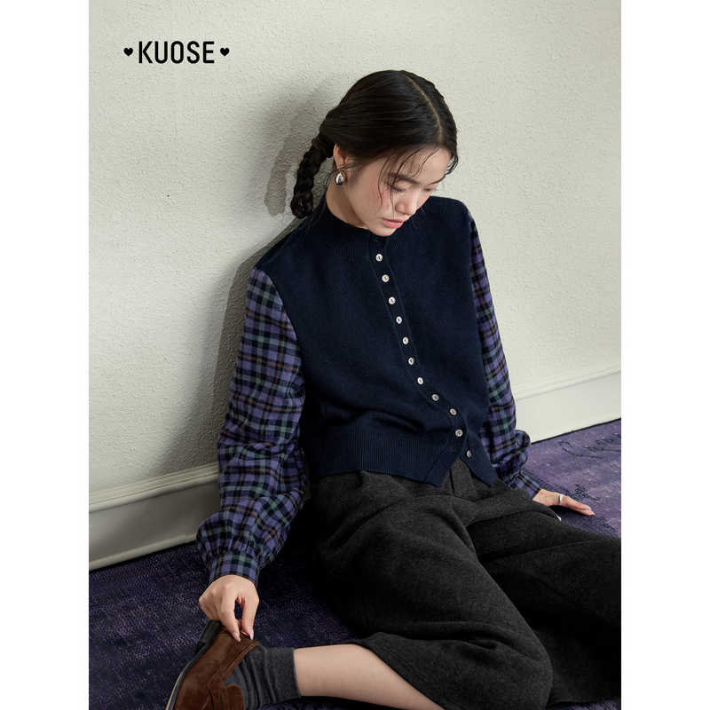 秋冬圆领羊绒衫 外套设计感小众假两件撞色毛衣 女100纯山羊绒开衫