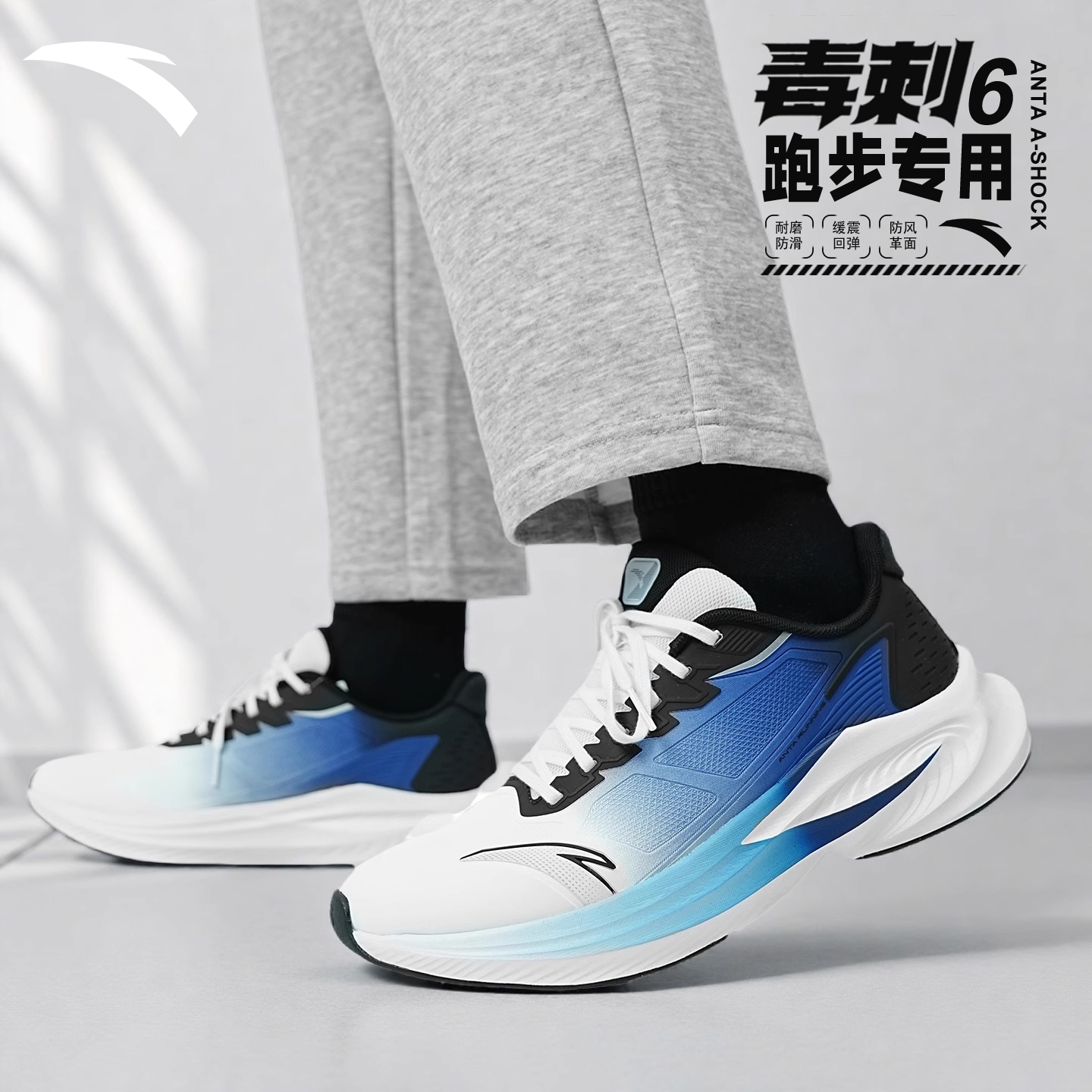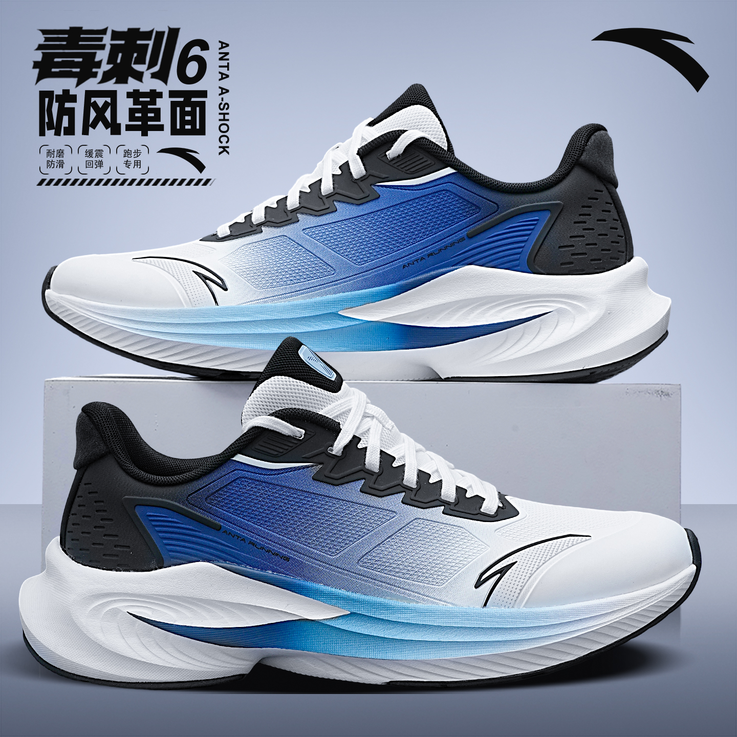 耐磨防风皮面减震回弹跑鞋 透气网面运动鞋 男新款 安踏毒刺6跑步鞋