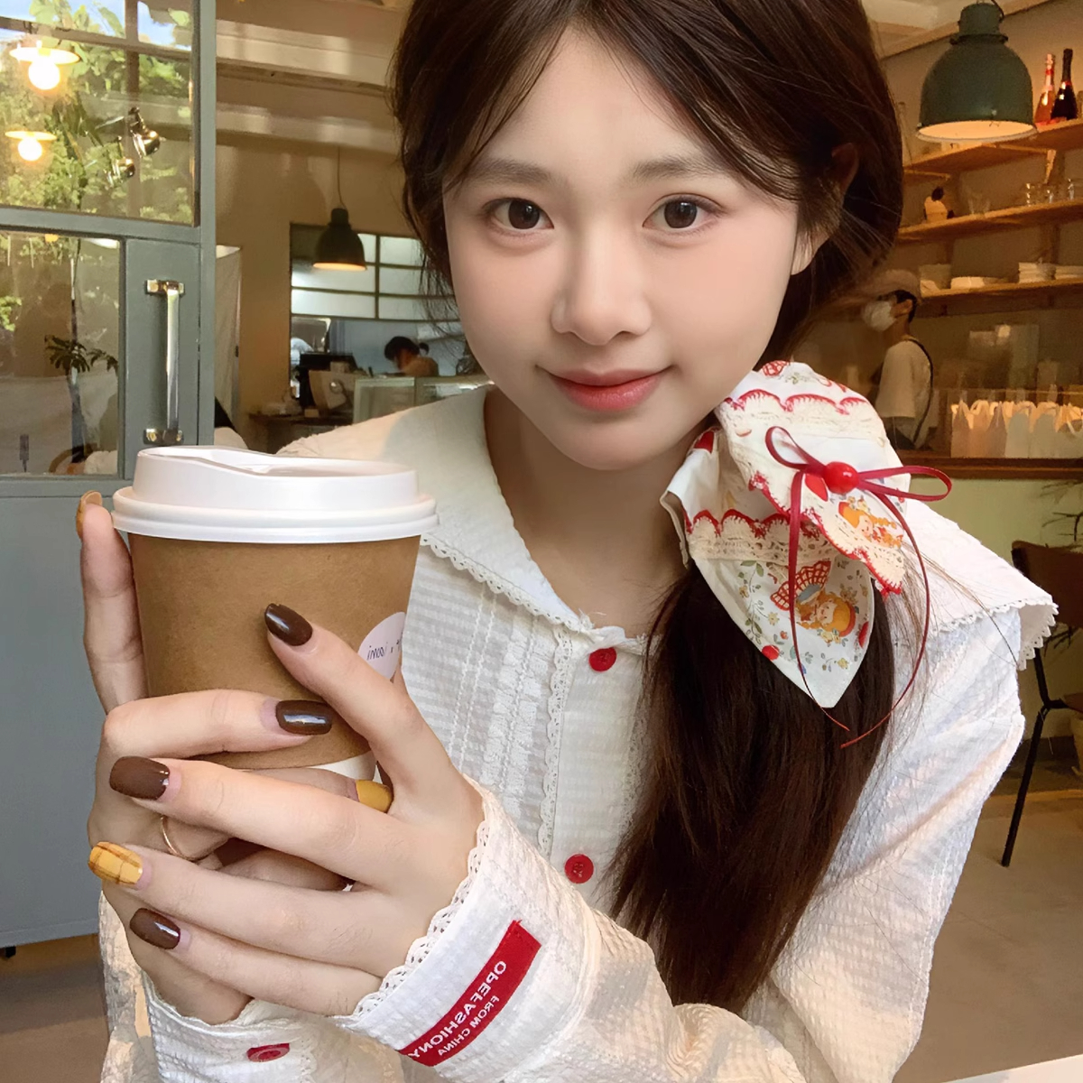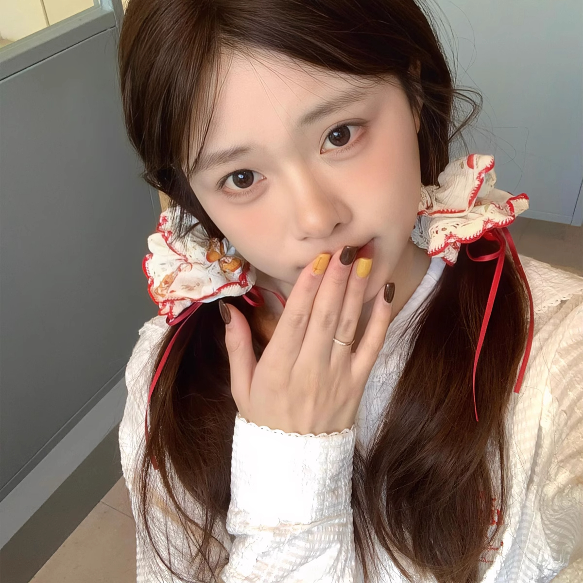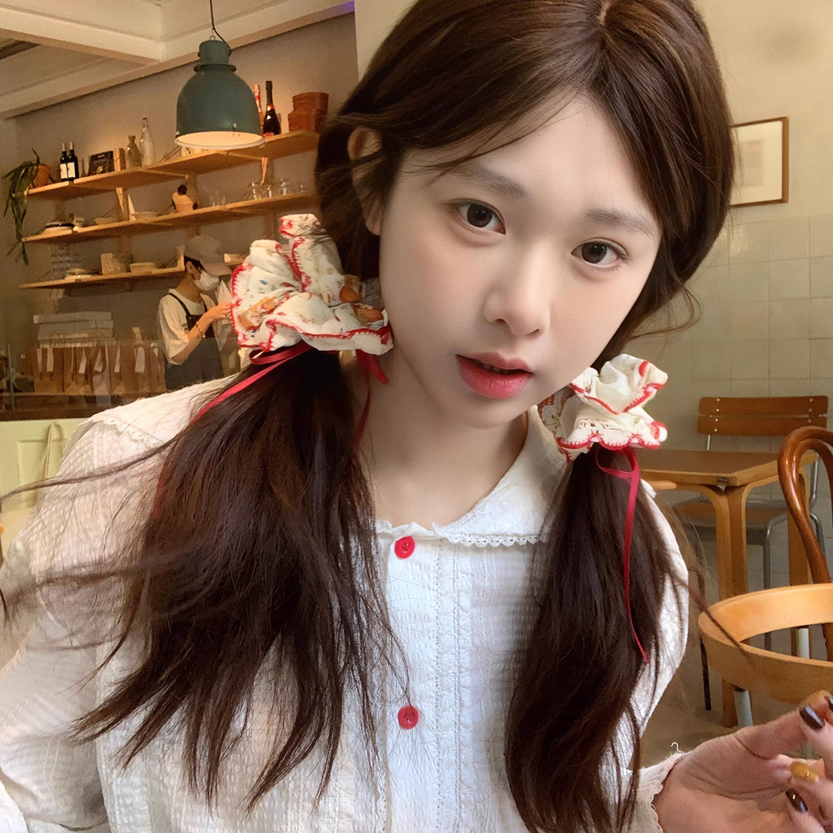 红苹果爱丽丝 蕾丝花边蝴蝶结方巾发圈森系少女肠圈发绳手作发饰