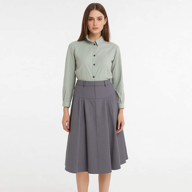 直身西装 Fabrique烟灰色褶裥短款 灰色半身裙女秋 章若楠同款