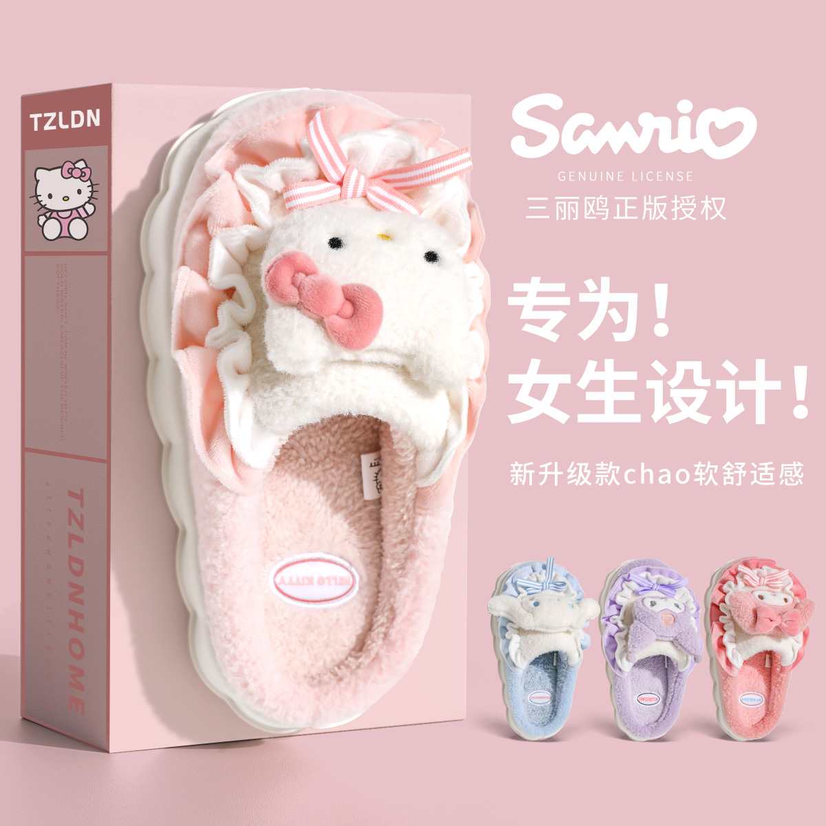 室内家居儿童可爱毛毛绒拖鞋 冬季 秋天包跟 女2025新款 kity猫棉拖鞋