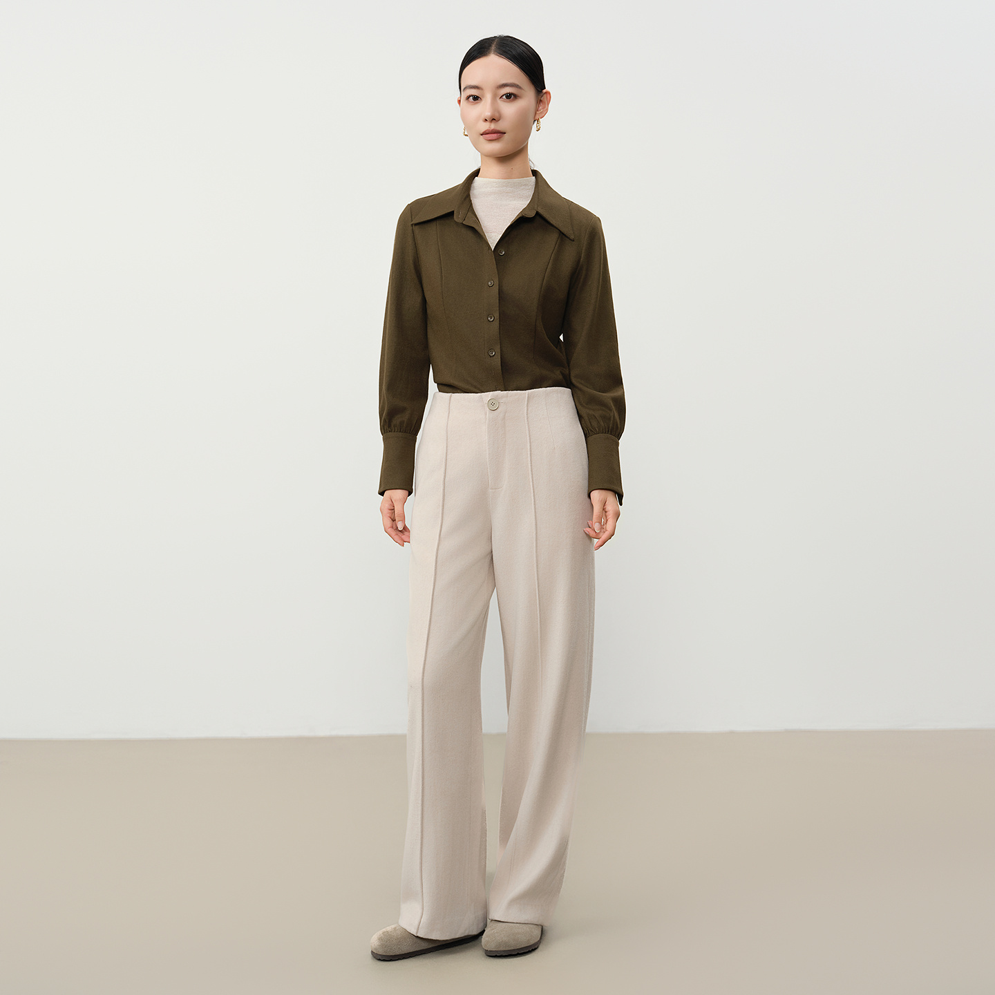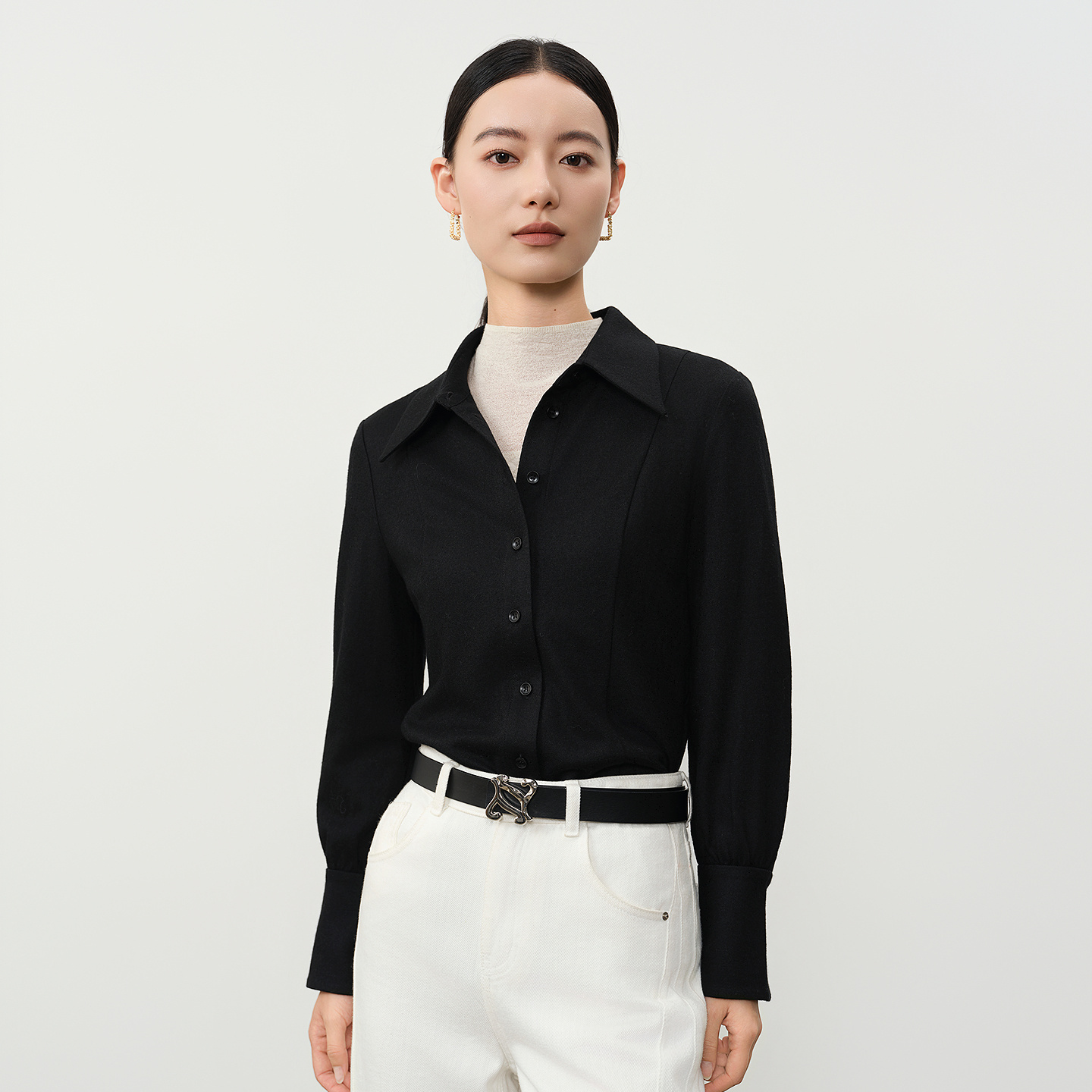 休闲显瘦高级感衬衣上衣 新款 谷邦绵羊毛通勤气质衬衫 女2025冬季