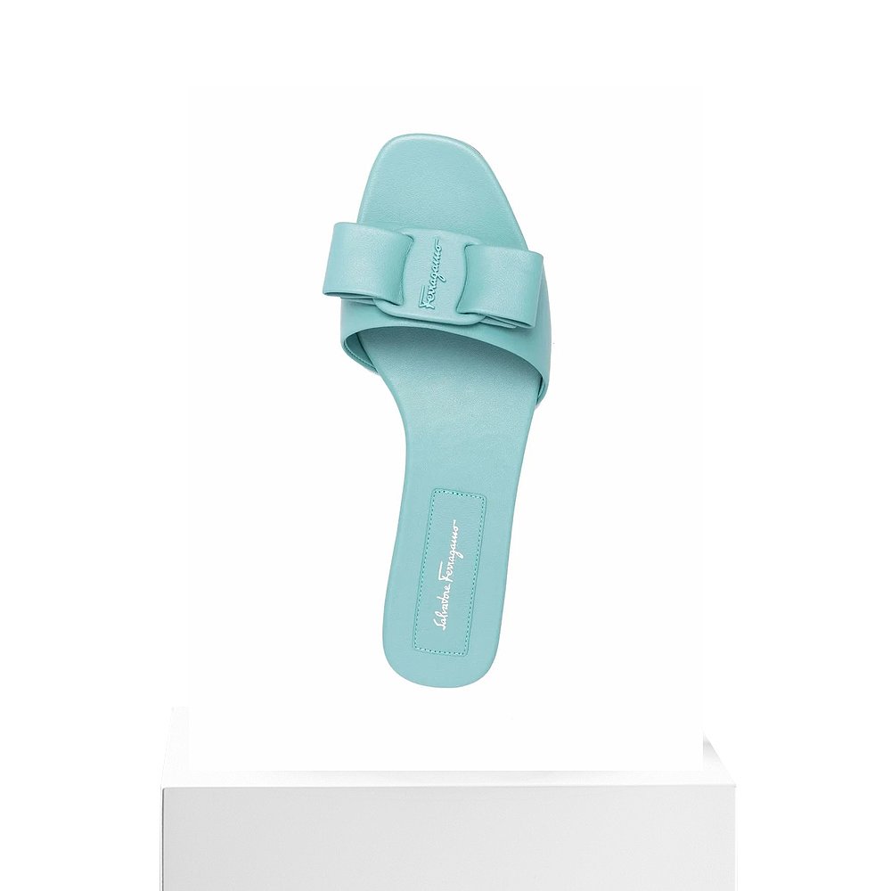 美国 蓝色 自营salvatore ferragamo菲拉格慕压花蝴蝶结细节凉鞋
