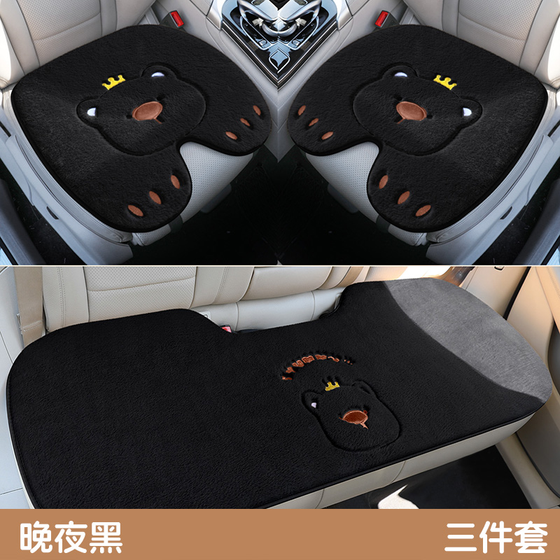 新款 汽车坐垫毛绒皇冠熊卡通可爱保暖座垫高级感座套内饰用品 冬季
