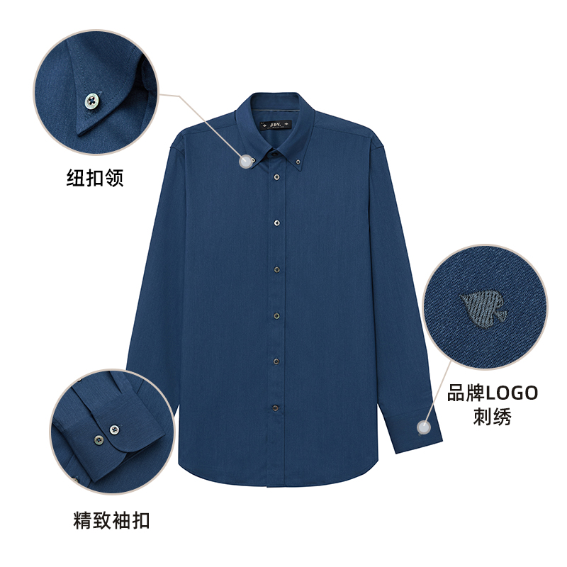新品 2025秋季 深蓝色长袖 正装 上衣 JDV男装 易打理衬衫 商场同款