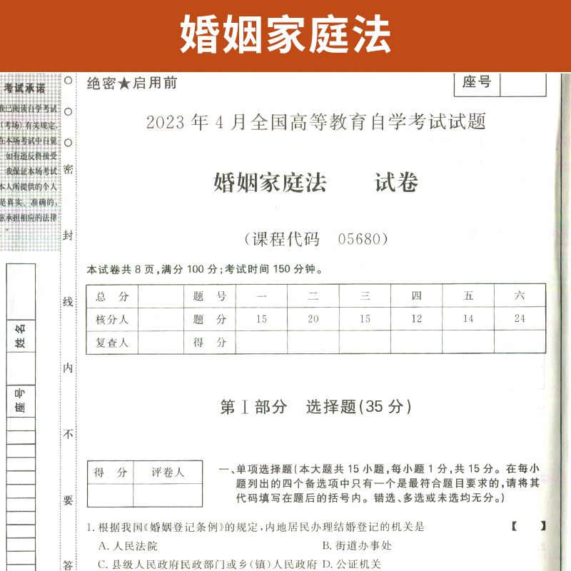 天一全新正版 历年真题模拟真题卷教材题库赠自学考试考点串讲 自考通试卷05680婚姻家庭法