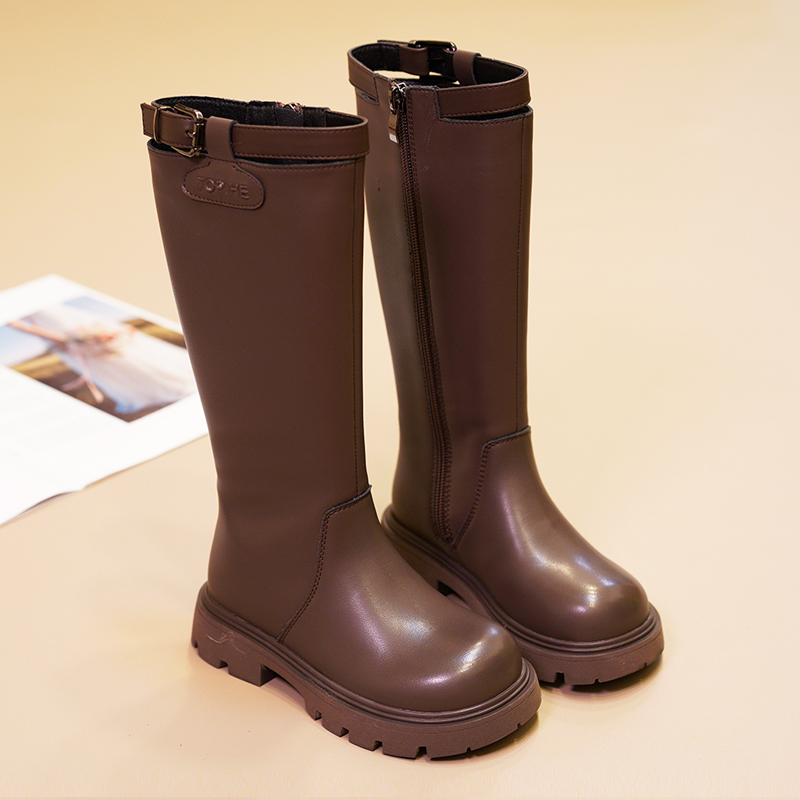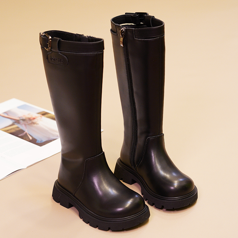儿童高筒靴长靴棉单靴黑色 新款 西瓜西女童靴子加绒童鞋 2025秋冬季