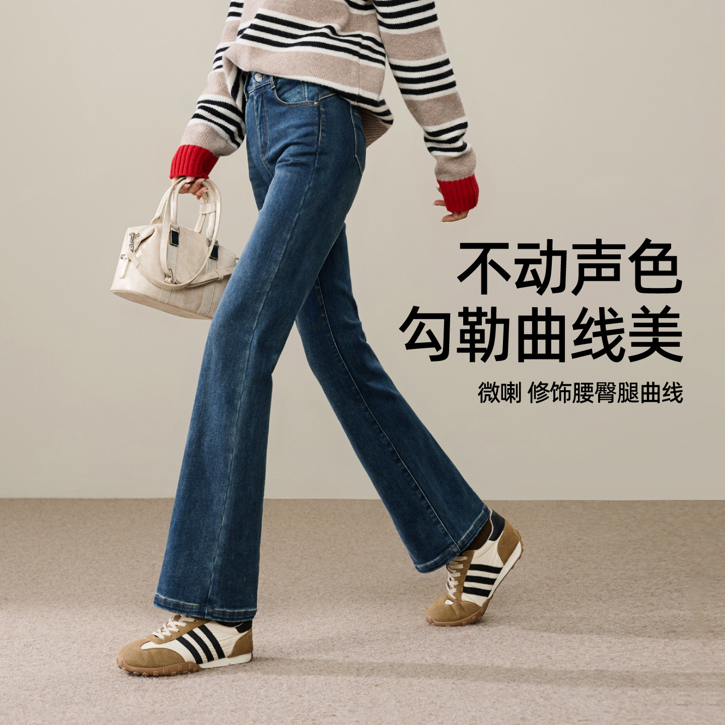 女05415688 松弛感重磅微弹洗水高腰微喇马蹄裤 佐丹奴牛仔裤 女新款