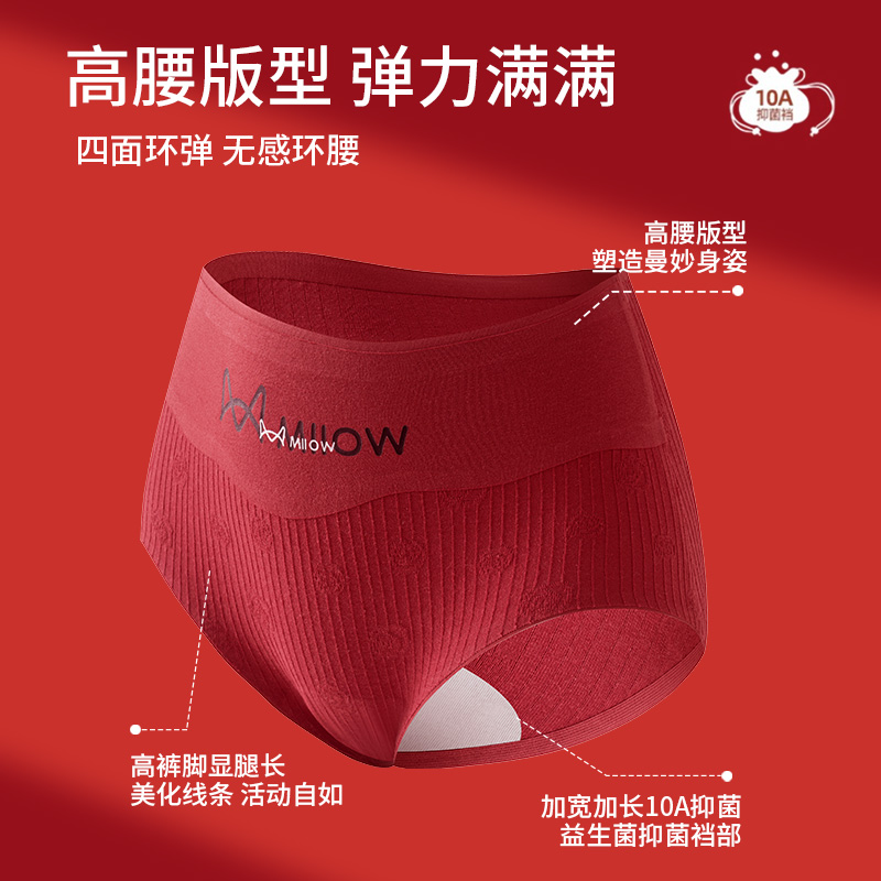 焕丽女王新中式 浮雕绣花高腰加长桑蚕丝底裆全包臀三角女士内裤