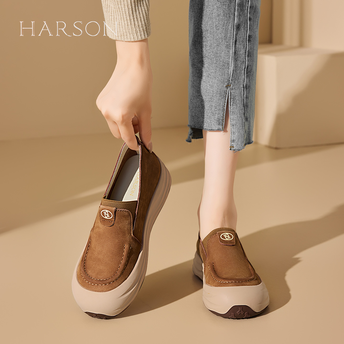 女鞋 豆豆鞋 子2025秋季 一脚蹬休闲鞋 新款 哈森头层牛皮复古单鞋