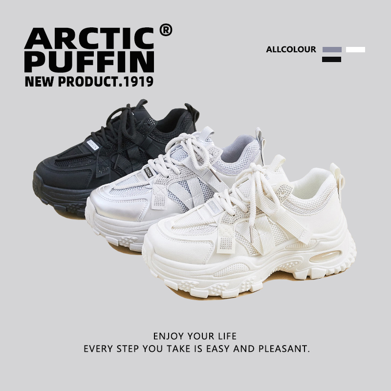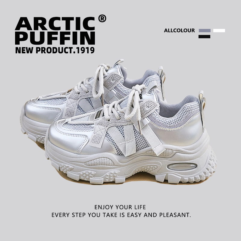 2025新款 银色老爹鞋 秋女鞋 厚底增高休闲鞋 银色运动鞋 斯凯奇熊猫鞋