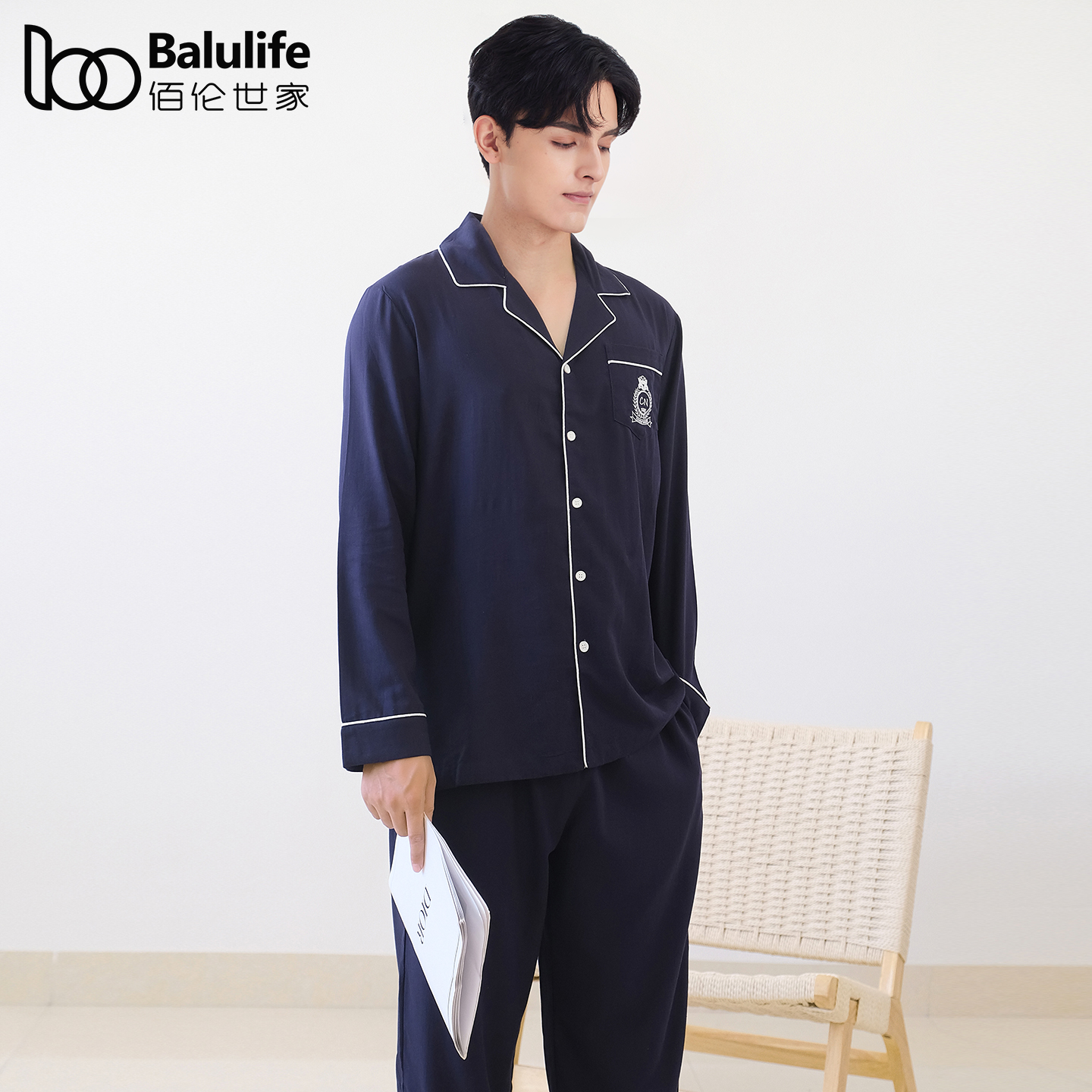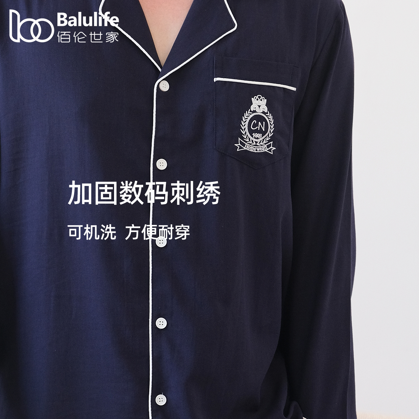 简约全棉高级感可外穿圆领家居服套装 春秋款 睡衣男士 猫人纯棉长袖