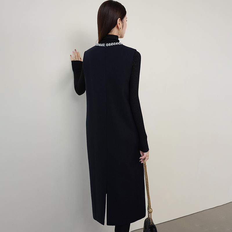 无袖 简约气质裙子休闲法式 羊毛呢连衣裙 时尚 晚白2025年秋新款