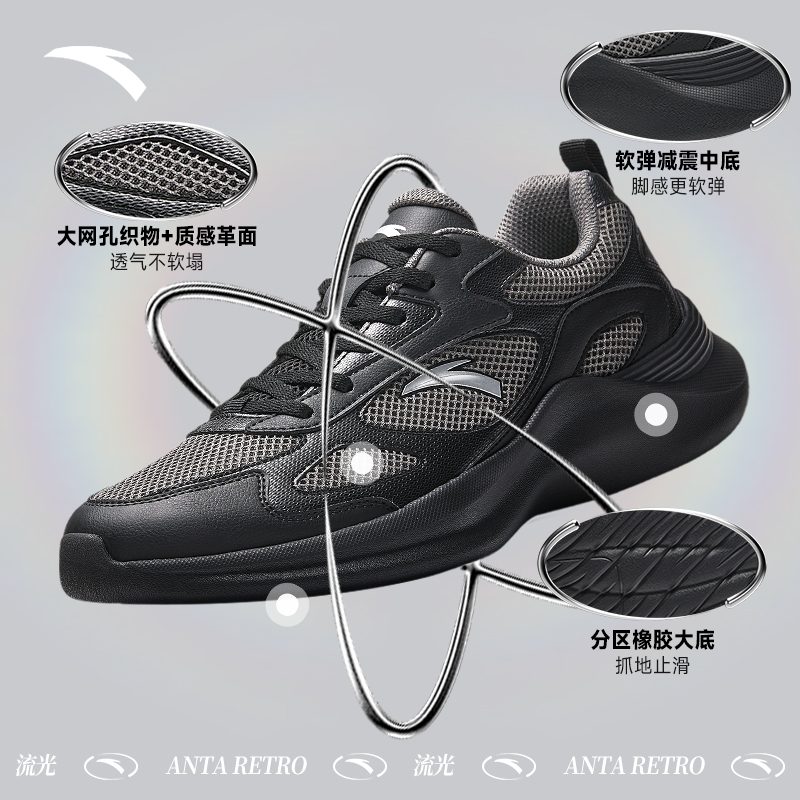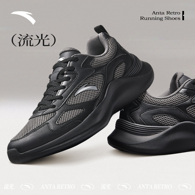 新款 秋季 运动轻便老爹鞋 官方正品 男 安踏月下跑步鞋 黑色运动鞋 男款