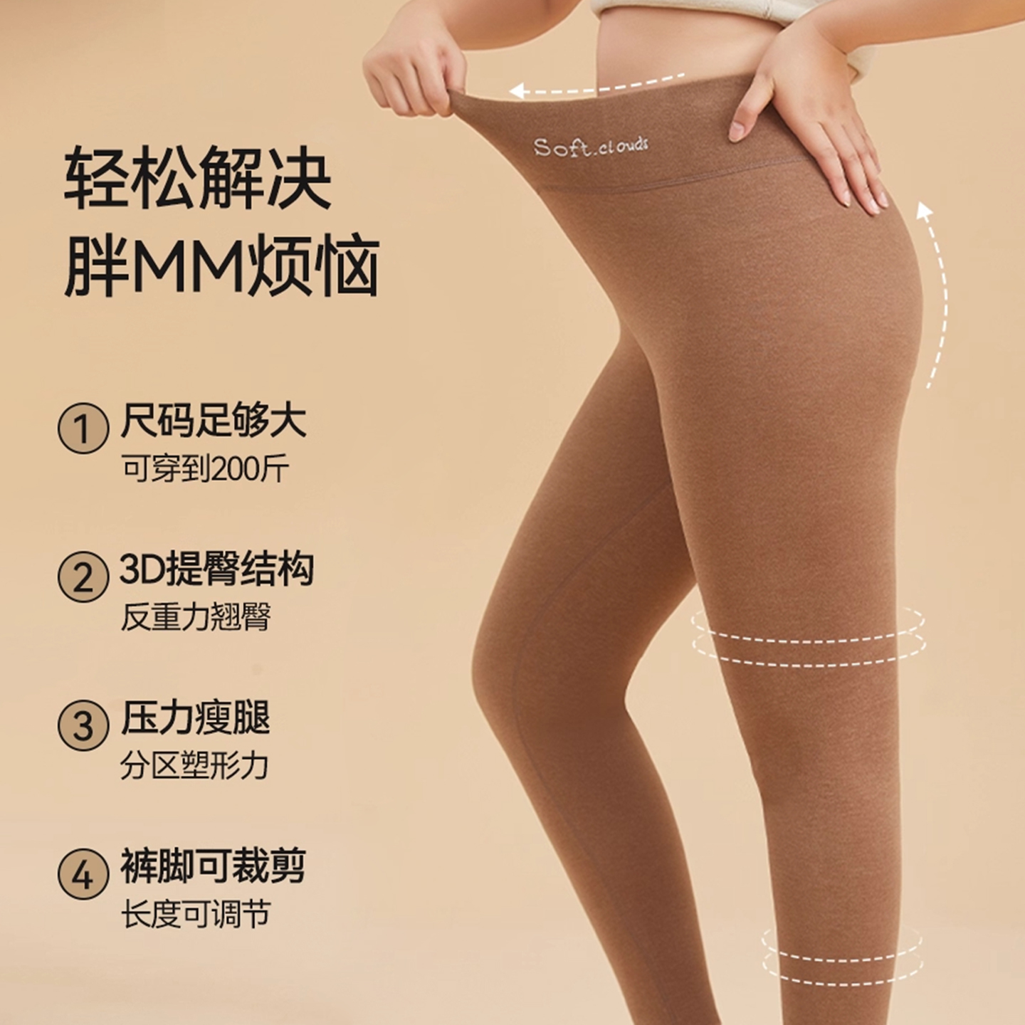 棉裤 德绒加大码 加绒内穿高腰打底秋裤 女士胖MM200斤秋冬季 保暖裤